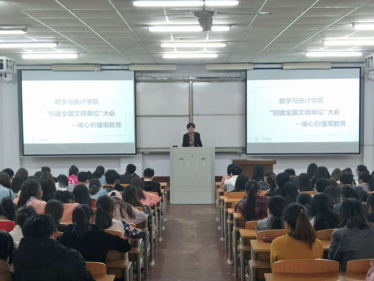 首先,陈树艳副书记强调了创建全国文明单位的重要意义,她指出高校是精神文明建设的重要阵地,精神文明建设是引领高校健康发展的强大动力。希望同学们以此为荣,争做文明学生。接着陈书记从三个层面就社会主义核心价值观做出了生动深刻的解读,她要求全体学生干部要结合当前工作,切实践行社会主义核心价值观,真真正正做到以身作则、率先垂范,严格要求自己,身先士卒,在纪律、考勤、卫生等方面起模范带头作用。陈书记以示例提出尊师重教的重要性,见到老师打招呼等文明行为。最后,陈书记对同学们提出创建文明校园、争取文明班级的要求,并对此次大会做出总结。