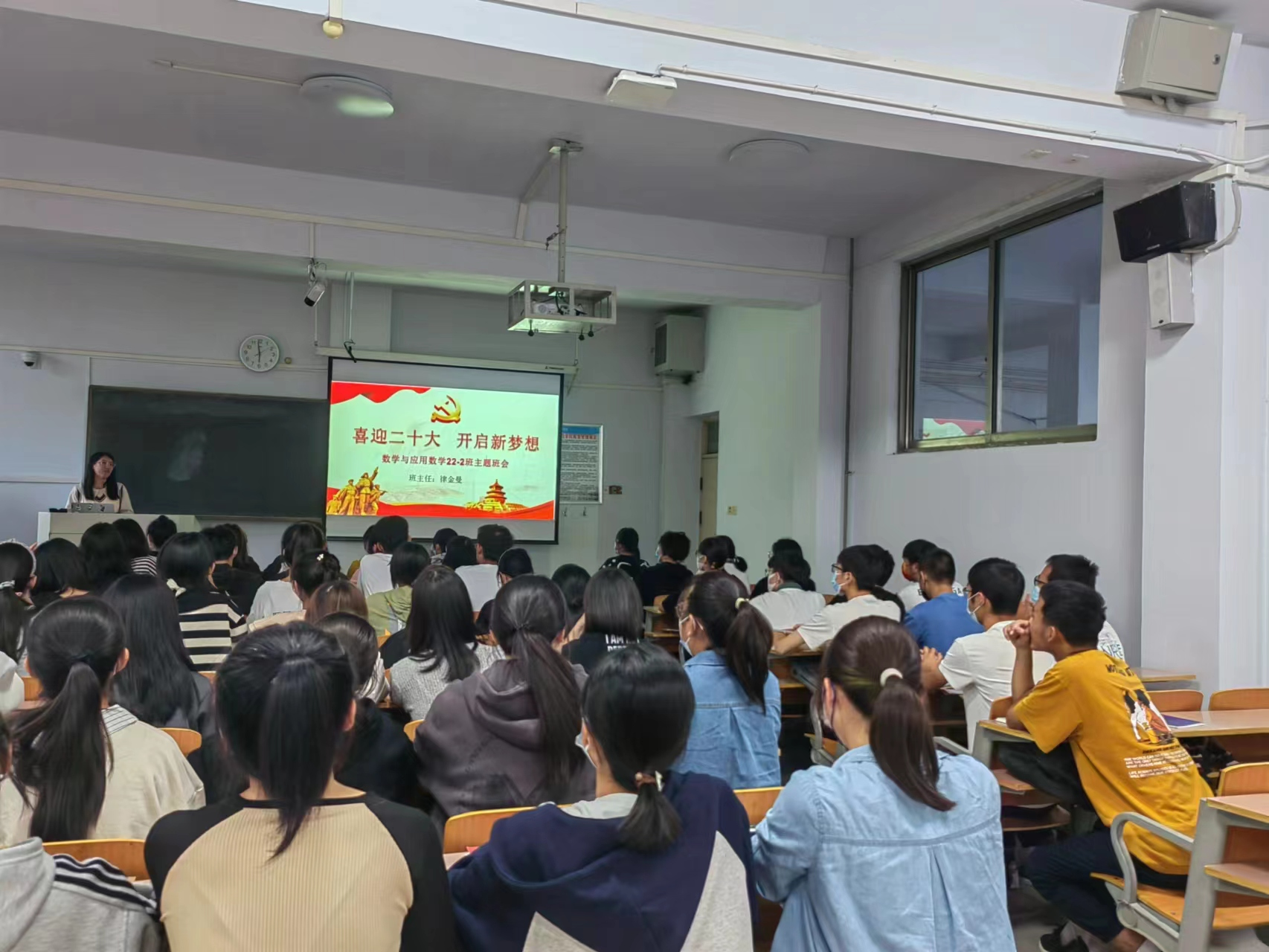 围绕“喜迎二十大,开启新梦想”主题,班主任、辅导员老师通过为学生讲述中国共产党百年的奋斗历程,引导学生强化使命担当,坚定理想信念,厚植家国情怀,以奋进姿态迎接10月16日党的二十大胜利召开。