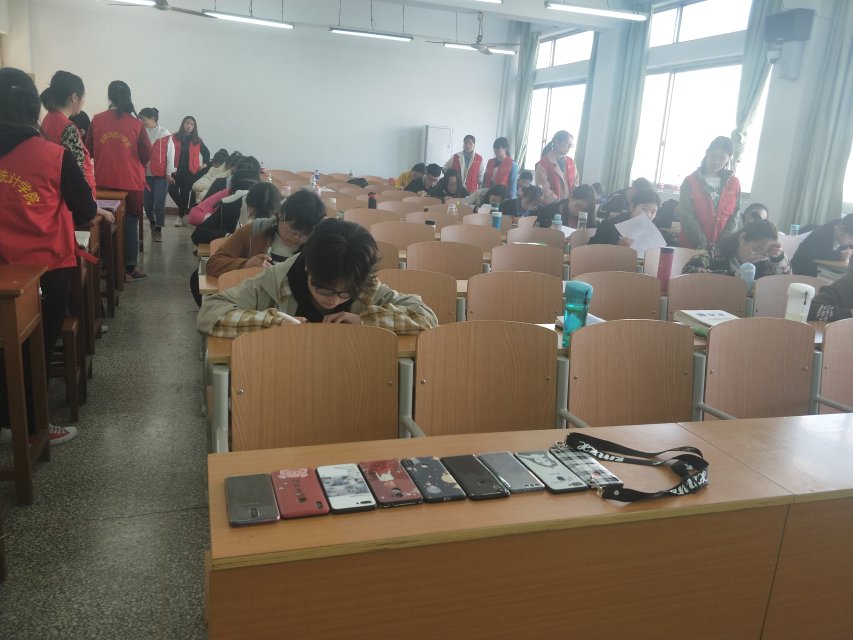 中午12点,团总支学生会的工作人员来到决赛现场,提前进行考场布置、考生签到、座位安排等一系列工作。12点30分,决赛正式开始,56名选手依次入场,由监考人员分发试卷,宣布注意事项与考场纪律并说明本次考试的主题趣味数学题,需要有开发性思维。比赛中小组各成员之间分工明确,各司其职。参赛选手们先大体浏览考卷,分工做题,做完之后小组内成员开始交流与讨论,把不会或有争议的题进行讨论,说出各自的想法与看法,得出最终的答案。下午两点,决赛结束,56名选手在工作人员的引导下上交考卷,依次离开考场。
