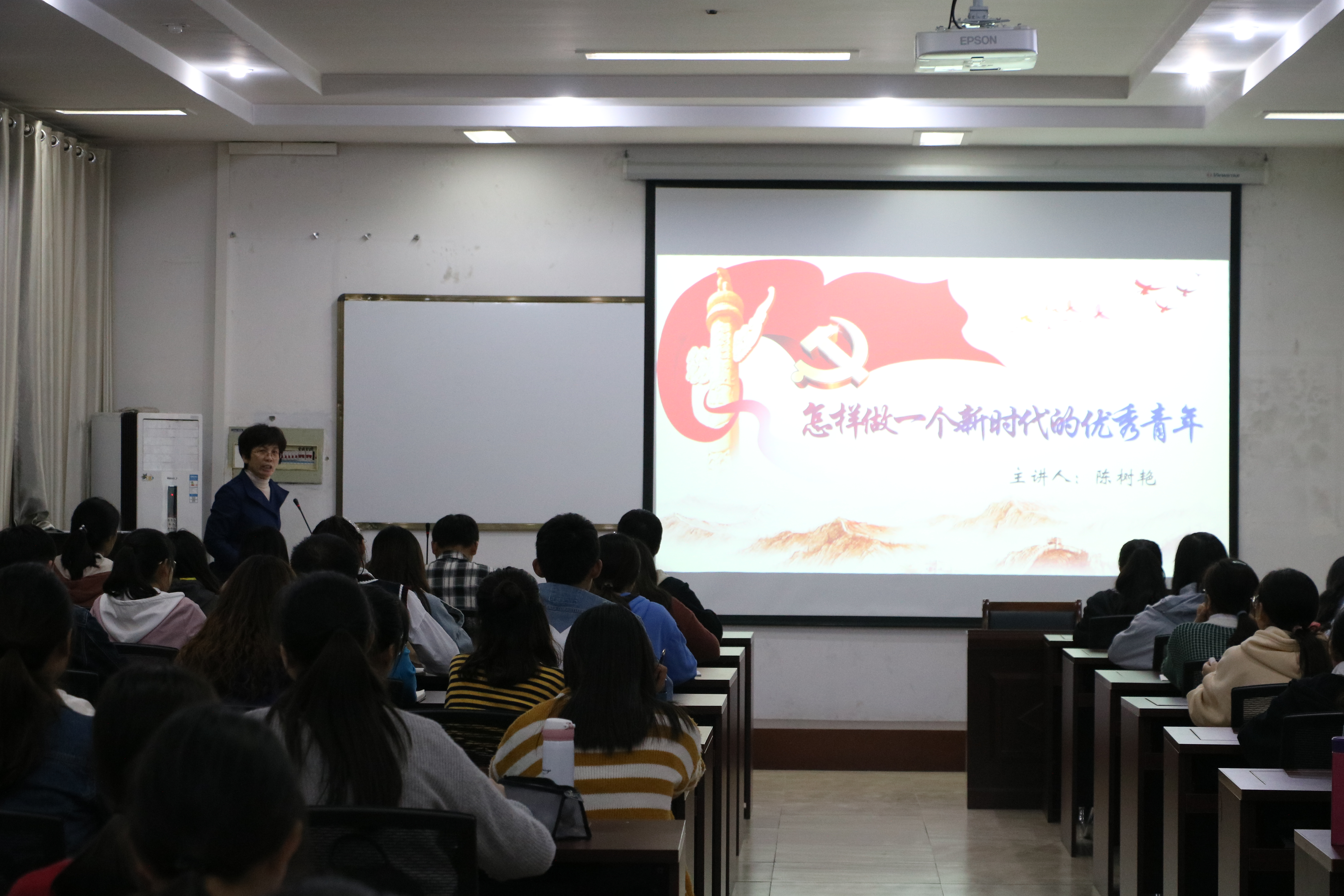 陈树艳书记此次党课题目是《怎样做一个新时代的优秀青年》,内容包括四部分,即“新时代”的寓意、习近平寄语新时代青年、争做新时代“三有青年”、怎样练就优秀的自己等。陈书记围绕怎样做新时代“三有青年”要求同学们在新的时代要热爱祖国,忠于人民;要有志,立鸿鹄志,做奋斗者;要求真,求真学问,有真本领。最后她结合同学们实际生活,要求同学们青年从做“小事”,成就“大梦想”、通过“重是非”,培养“价值观”、通过“贵坚持”,成就“大目标”三方面来练就优秀的自己。