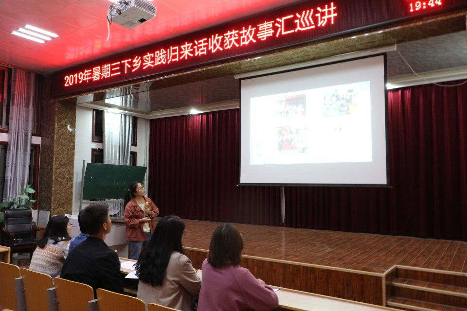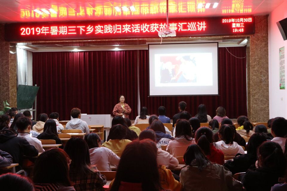 为进一步宣传展示实践成果,深入了解社会实践活动,由Williamhill威廉希尔校团委主办的"2019年暑期三下乡实践归来话收获故事汇巡讲" 活动于10月30日晚在睢阳区生物报告厅圆满举行。本次故事汇巡讲活动共有19个团队参加。