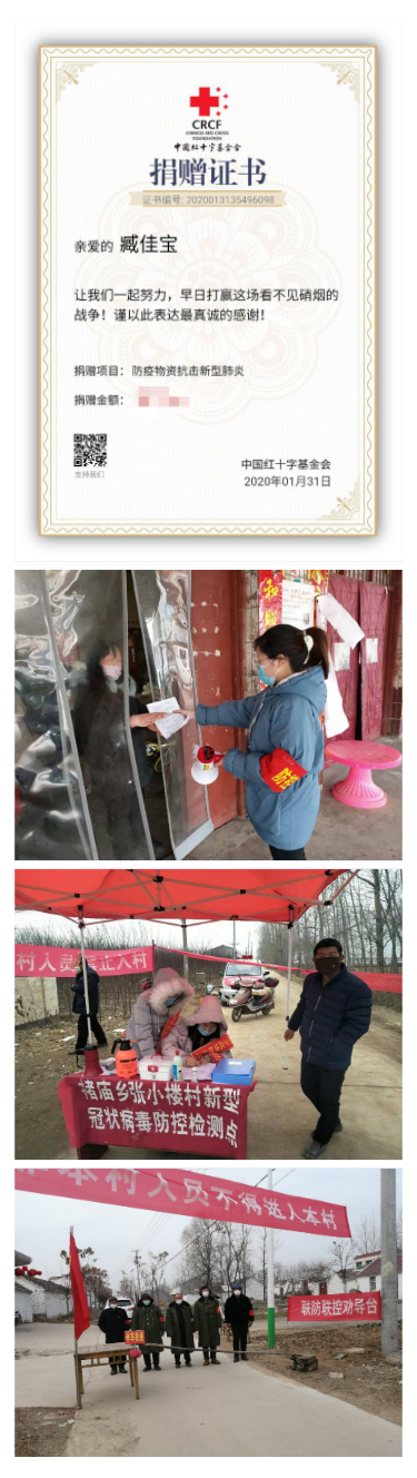 新型冠状病毒肺炎情况出现后,我院学生高度关注疫情情况,能够按照学院的要求自觉在家隔离预防。虽然不能外出,但是同学们自发的在抗疫期间在力所能及的情况下主动向疫情灾区捐赠医疗物资;学院团总支副书记高乐等部分党员代表在家期间听说当地防控新型冠状病毒感染肺炎的阻击战中需要党员来进行一线执勤,作为一名中共预备党员的他立即通过家长联系到村干部,恳请让自己也参加到当地的联防联控的工作当中,在征得同意之后第二天就参与到村口执勤的志愿工作当中,通过自己的实际行动为疫情防控工作尽自己的一份力。