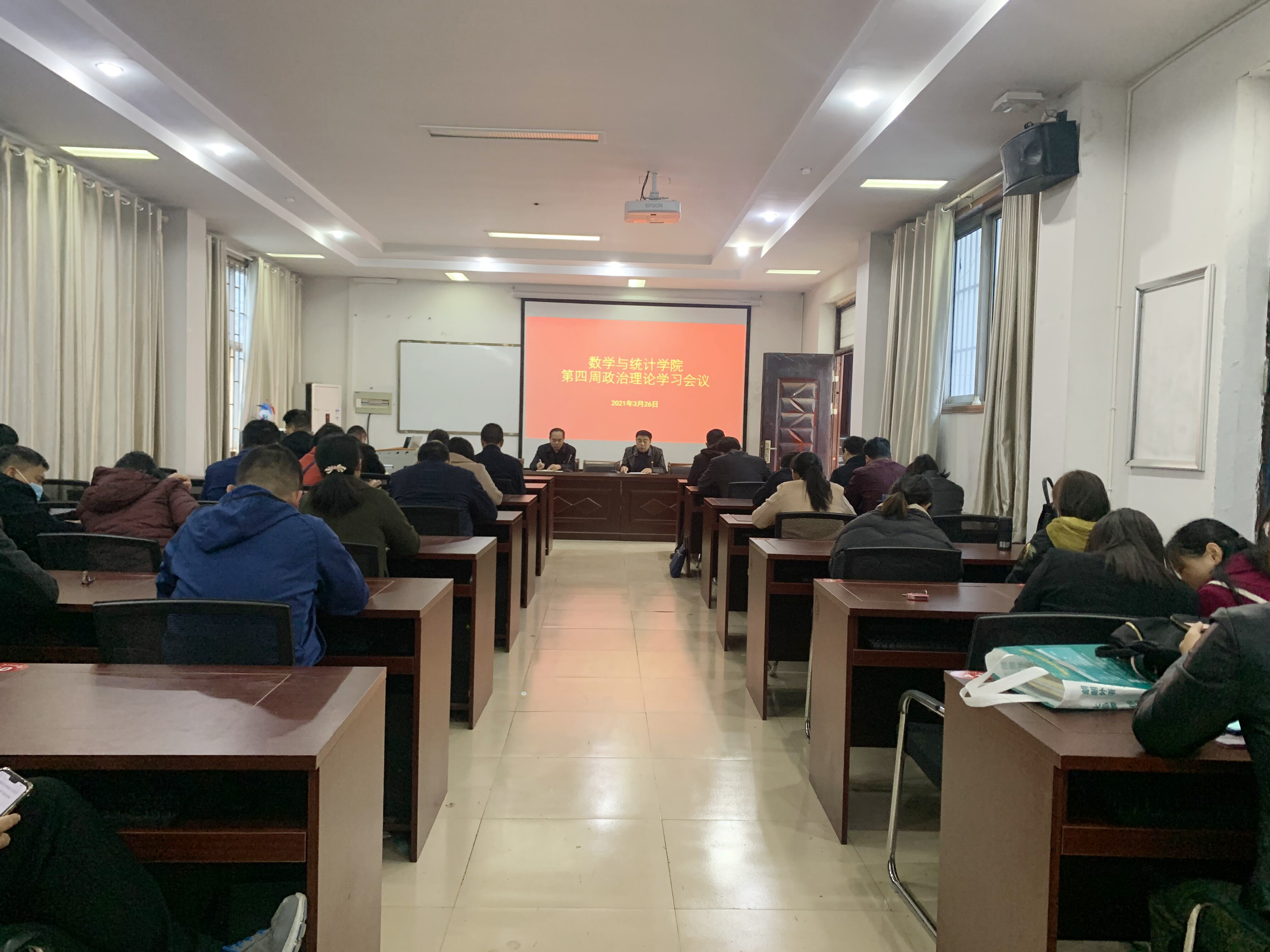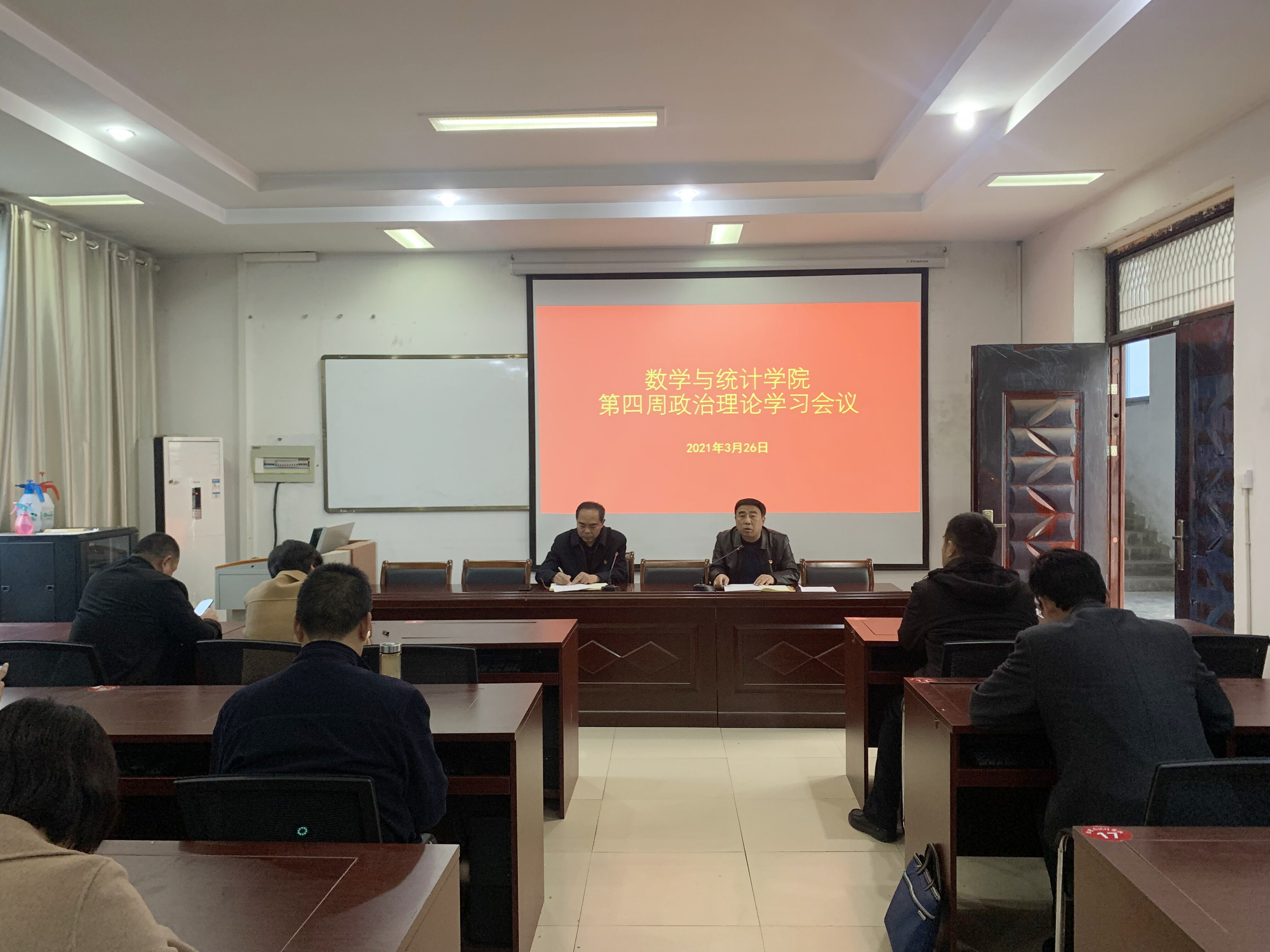 2021年3月26日,根据学校党史学习教育实施方案安排,williamhill中国在数学楼综合会议室召开第四周政治理论学习会议,学院领导班子、全体教职工参加此次会议,会议由党总支书记陈东主持。