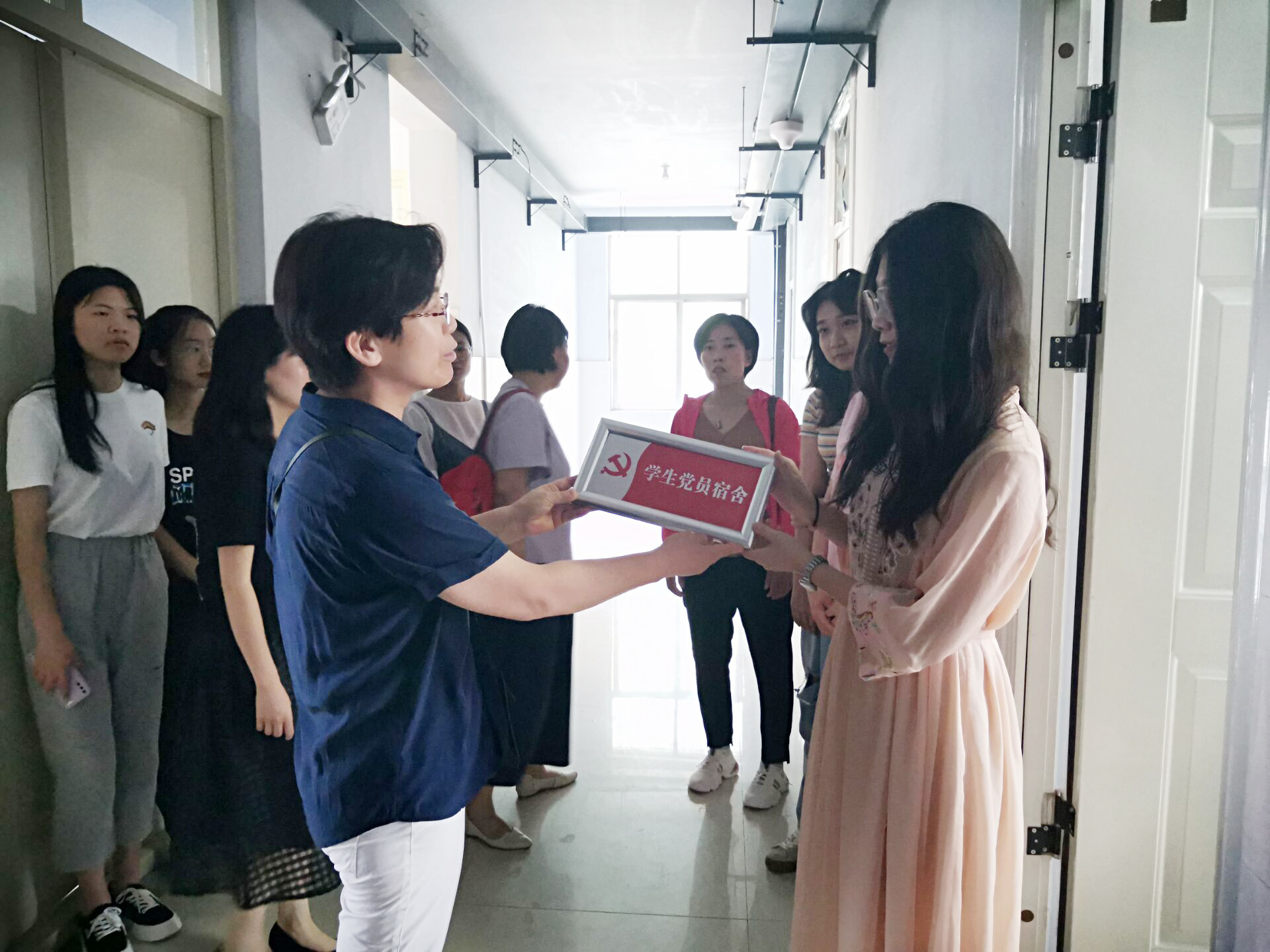 为进一步加强宿舍文化建设,充分发挥学生党员在学习生活中的先锋模范作用,2021年6月21日中午,williamhill中国党委副书记陈树艳书记带领学工队伍一同走访学生宿舍,了解学生在宿舍的生活状况并为学生党员宿舍挂牌。