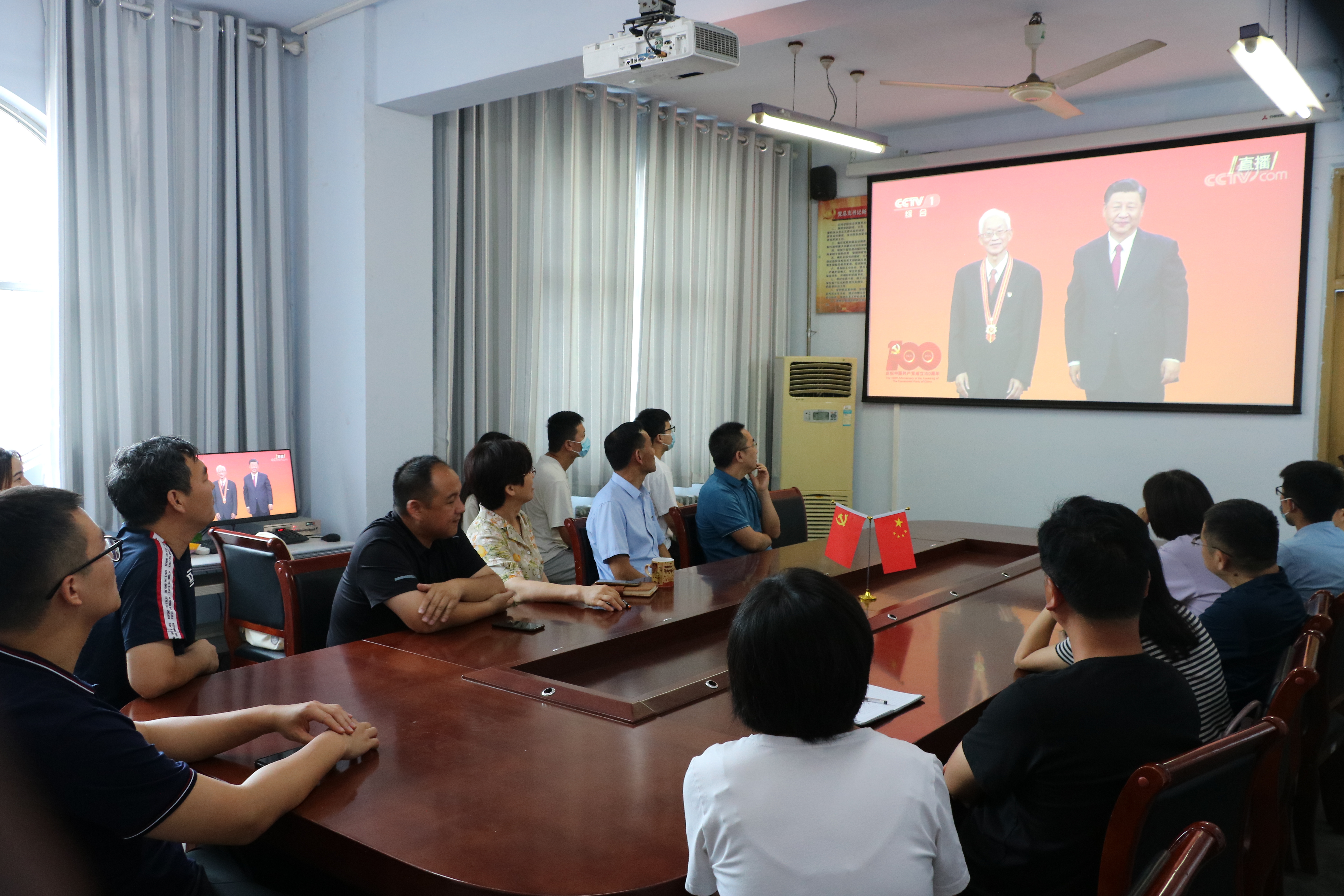 2021年6月29日上午williamhill中国党委组织师生党员代表在数学楼党建活动室观看“庆祝中国共产党成立100周年‘七一勋章’颁奖仪式”,学院领导班子、教职工党员代表、学生党员代表参加了此次活动。