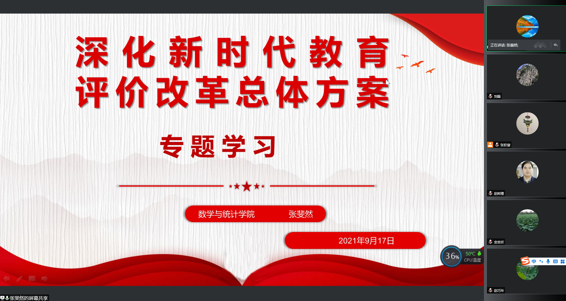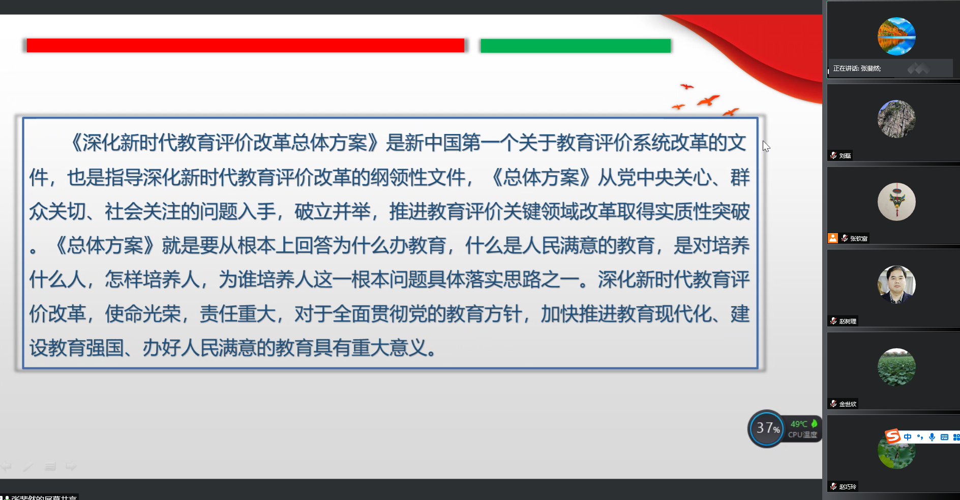 院长张斐然组织开展了《深化新时代教育改革总体方案》专题学习。张院长从出台背景、指导思想、主要原则、改革目标、重点任务、学校“十四五”时期深化教育综合改革实施方案六个方面向全院教职工深入解读了方案内容。与会教职工结合自身工作就教育改革评价中的教师评价、学生评价、科研评价等内容畅谈思路想法,提出了很多就有针对性的建议。张院长强调,学院全体教职工要充分认识到《总体方案》的重要意义,要把深化教育改革与学校“十四五”发展规划向结合,坚持把立德树人成效作为根本标准,坚定不移贯彻党的教育方针,牢记为党育人、为国育才使命。