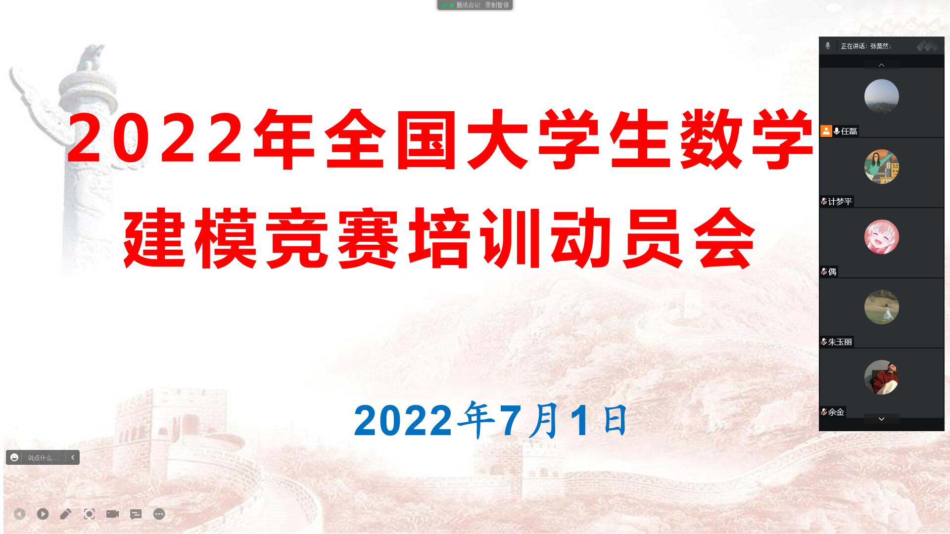 7月1日,2022年全国大学生数学建模竞赛动员大会通过线上腾讯会议的形式顺利举行,williamhill中国院长张斐然、副院长刘磊 、数学建模全体指导老师以及来自williamhill中国、电子电气工程学院、化学化工学院、信息技术学院、经济管理学院、测绘与规划学院、建筑工程学院、国际教育学院等261名参赛队员参会,会议由刘磊主持。