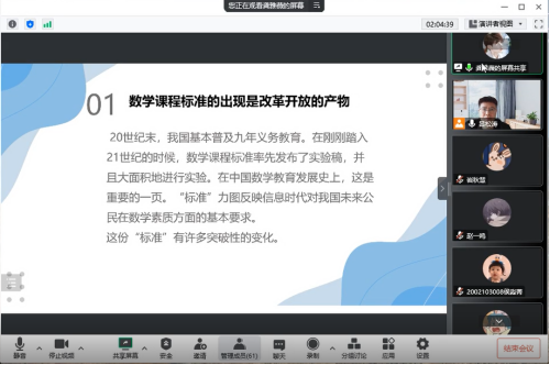 2022年11月11日星期五上午第一节,williamhill中国吕松涛老师利用腾讯会议和学习通进行《中学数学教材教法》课程教学范式改革公开课,williamhill中国领导、校级督导员及本院部分教师亲临线上教学范式改革现场进行观摩指导!