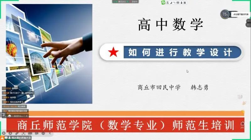 为提升师范生的教学设计能力,提高师范生的专业素养,williamhill中国于12月17日晚七点在腾讯会议开展了“互联网+”中学数学师范生技能培训工作坊第四次集中培训——高中数学如何进行教学设计。此次培训由商丘市回民中学韩志勇老师主讲,中学数学工作坊11位坊主,2020级辅导员姜素华以及2020级111位师范生参加了此次集中培训。