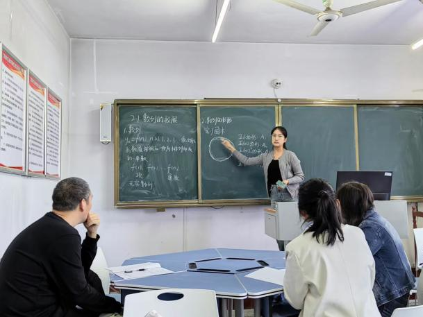 新入职教师蒋楠,经过前期的熟悉教材与精心备课,给大家展示了《微积分》课程中的一节课“数列极限”。蒋楠老师从数列的概念开始,引入新课,结合我国古代数学家刘徽、祖冲之利用割圆术计算圆周率的历史,进行爱国情怀的思政融入,并由此引入数列极限的定义。通过对本节课的完整讲授,展示了她的教学风格和特点。老师们从语言、板书、思政融入、知识架构等方面进行了精彩点评,对蒋楠老师的教学能力给予肯定,同时提出了针对性的改进意见和建议。