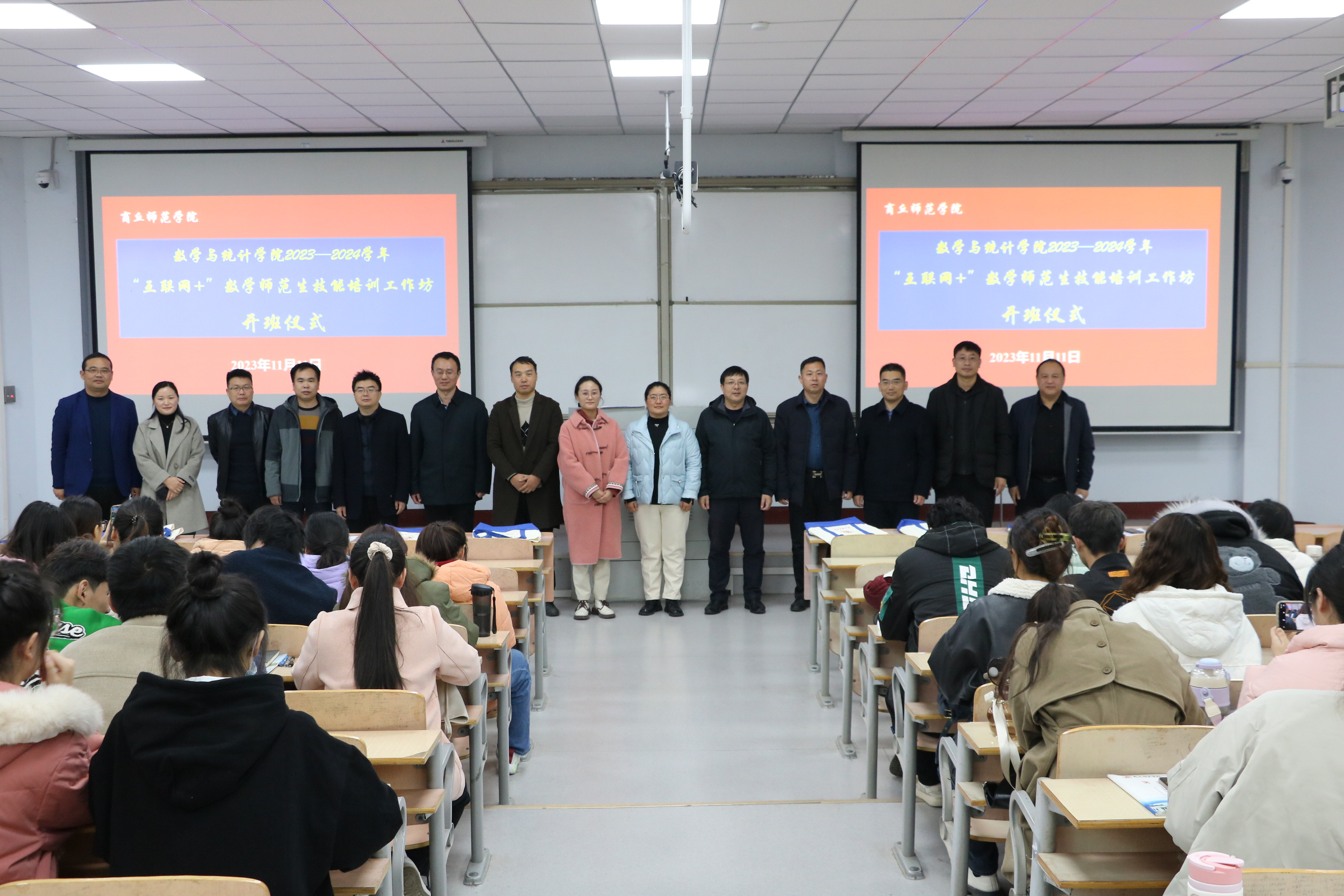 为进一步加快数学与应用数学专业师范生成长步伐,着力打造一支师德高尚、业务精良的高素质教师队伍,2023年11月11日上午,williamhill中国在我校睢阳校区1207教室举行数学与应用数学专业“互联网+”中学数学师范生技能培训工作坊开班仪式。仪式由williamhill中国副院长刘磊主持,商丘市教育体育局基础教研室佟俊姬老师和来自商丘市第一高级中学、商丘市回民中学、商丘市实验中学的12位一线教学名师以及数学与应用数学系主任司红颖出席此次会议。