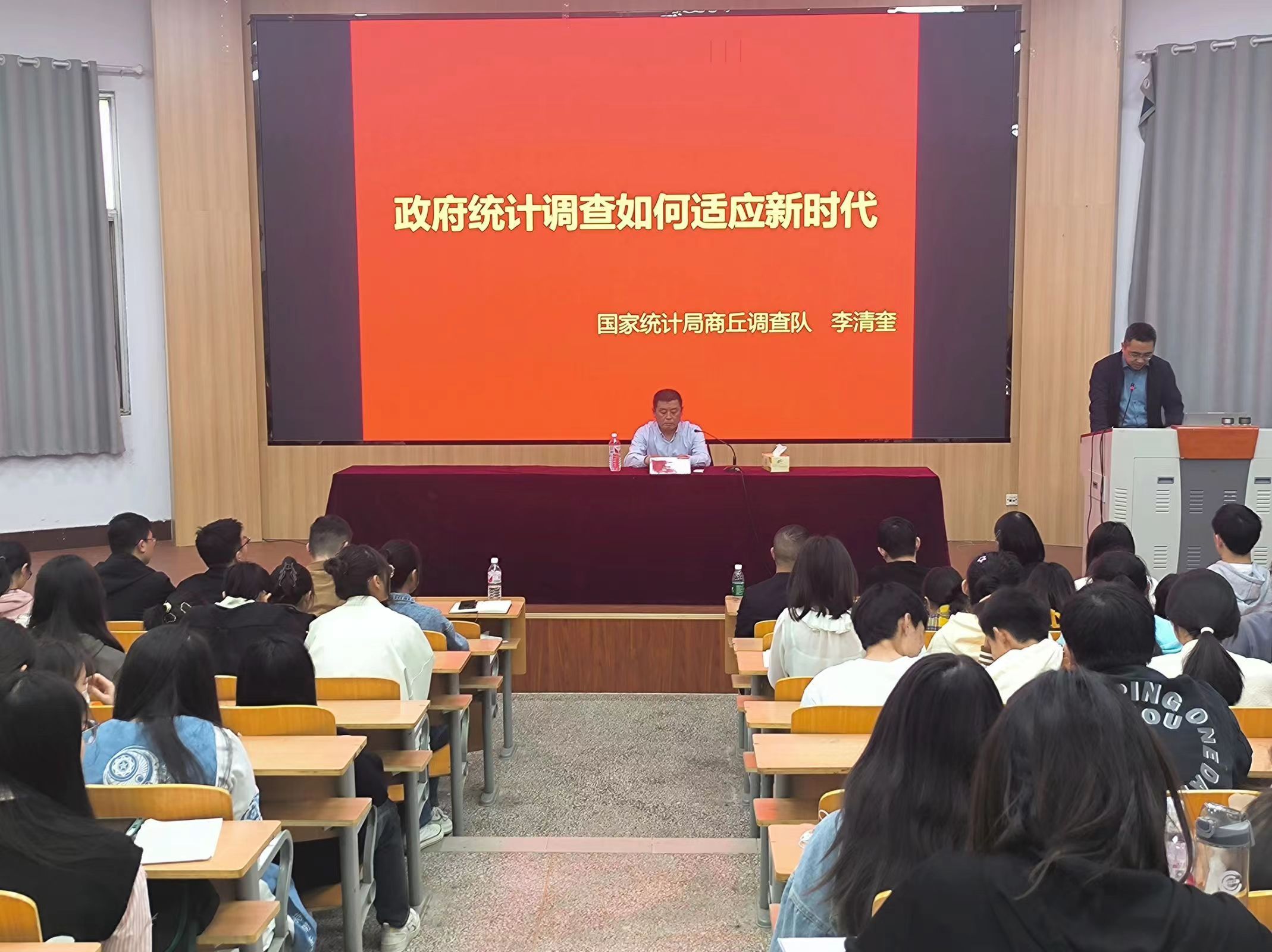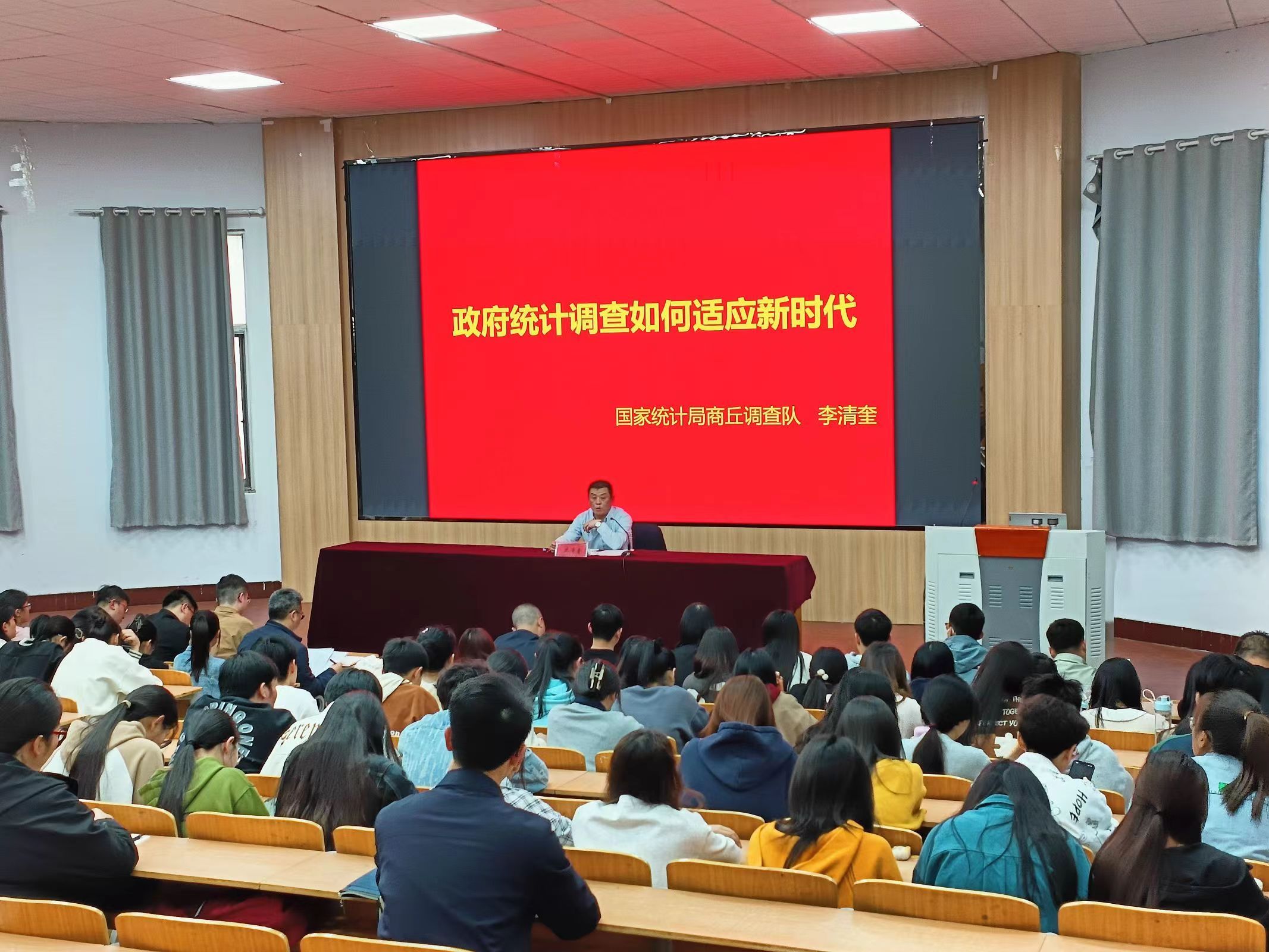 为了增进同学们对统计调查工作的了解,帮助他们毕业后更好地融入统计调查工作,应williamhill中国邀请,国家统计局商丘调查队李清奎队长于4月9日下午14点40分在物理报告厅开展了《政府统计调查如何适应新时代》讲座,讲座由williamhill中国副院长任磊主持,21级和23级全体统计学专业学生参加了讲座。