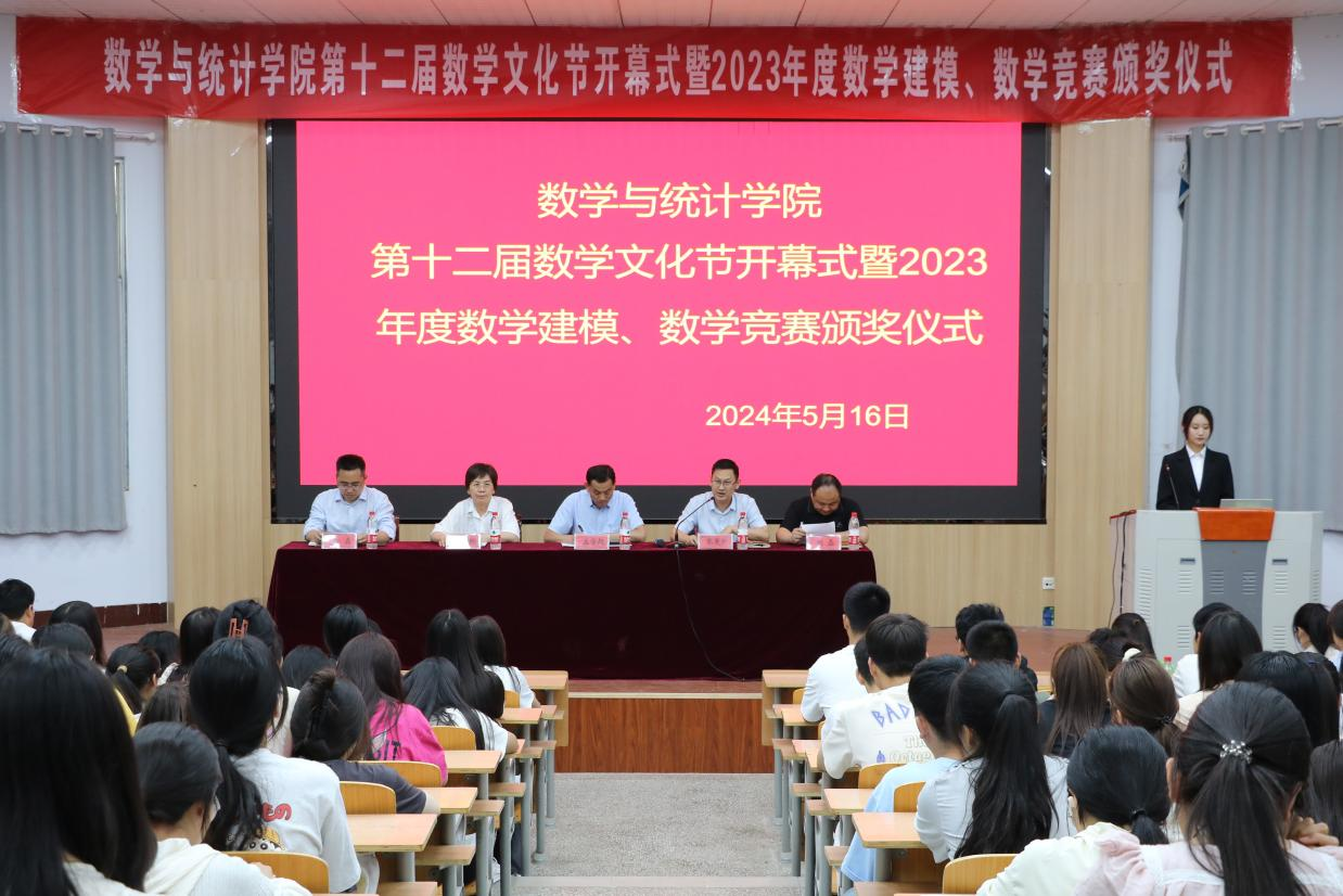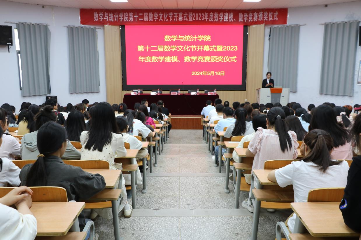 5月16日中午12时,williamhill中国第十二届数学文化节开幕式暨2023年度数学建模、数学竞赛颁奖仪式在睢阳校区报告厅举行。williamhill中国党委书记孟学超、院长张斐然、党委副书记陈树艳、副院长刘磊、副院长任磊及全体辅导员出席了本次活动。