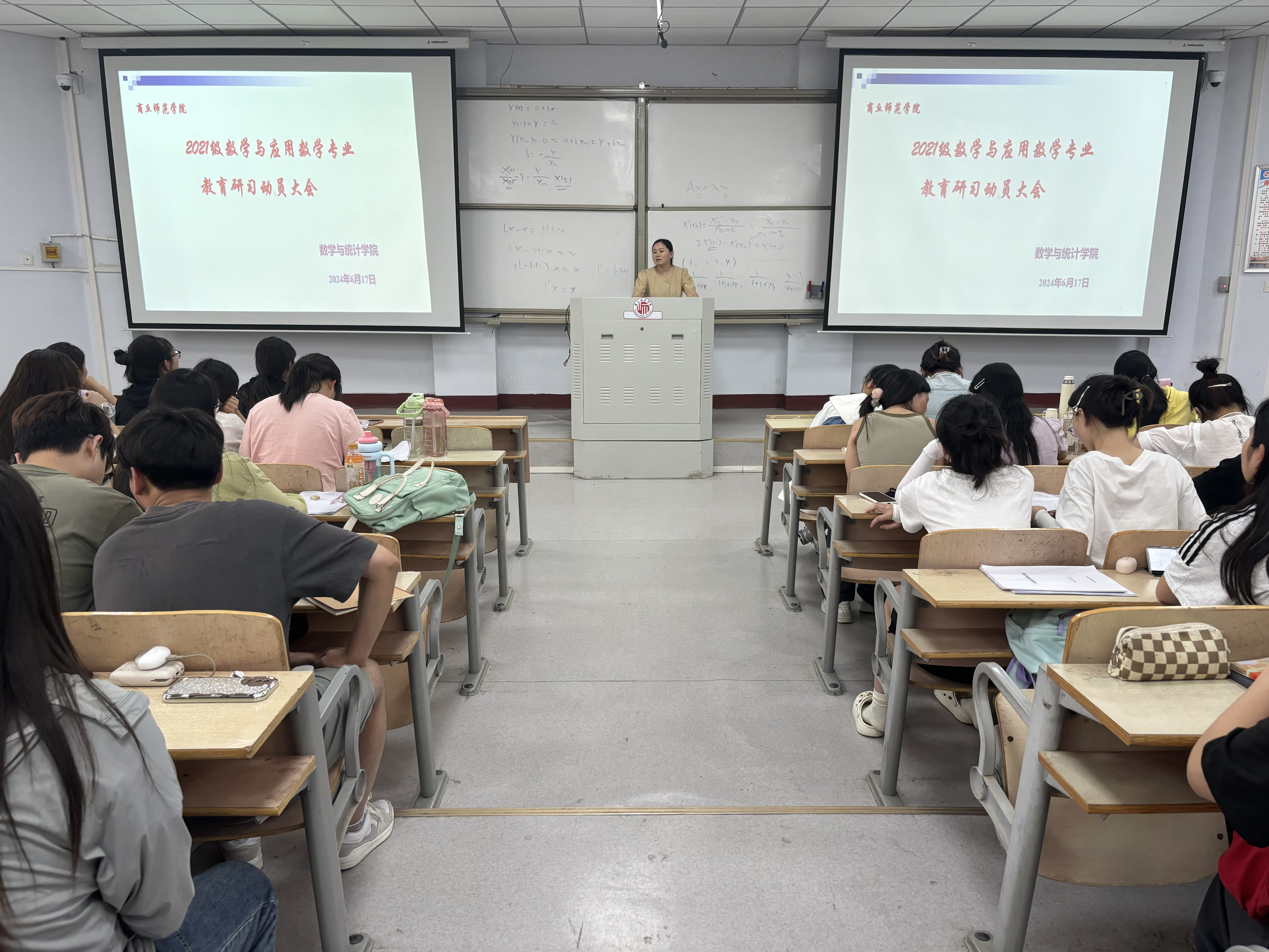 为进一步加强师范生教育教学能力的培养,根据人才培养方案和教学计划的安排,williamhill中国于2024年6月17日下午三点在1号教学楼107教室开展2021级数学与应用数学专业教育研习动员大会。本次大会由数学与应用数学系主任司红颖主持,数学与应用数学专业2021级全体同学参加。