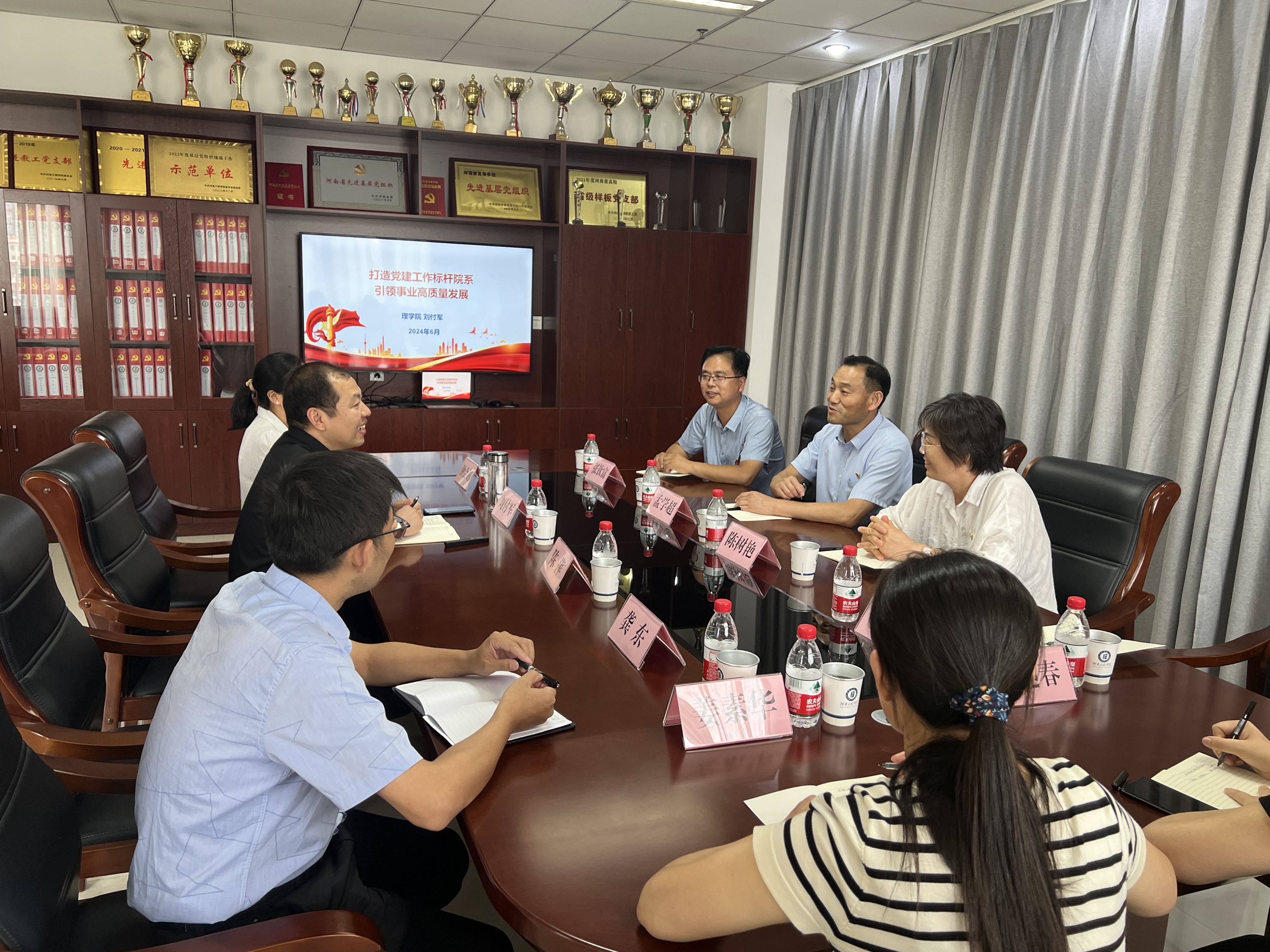 在河南工程学院调研期间,河南工程学院理学院党委书记刘付军热情接待了孟学超一行。交流会上,刘付军书记介绍了理学院基本情况和党建工作开展情况及取得的成绩。就党建工作品牌、样板党支部建设等工作做了深刻交流。陈树艳就团建、学生党支部建设情况、学生管理及分工作等工作与参会人员进行了热烈讨论。