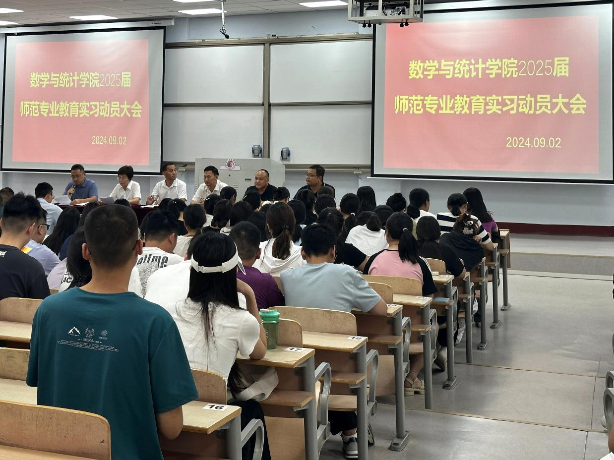 为了帮助同学们更好地了解教育实习工作,确保实习工作顺利开展,williamhill中国于9月2日下午三点在一号楼107教室组织召开了2025届师范专业教育实习动员大会。本次动员大会由williamhill中国党委副书记陈树艳主持,党委书记孟学超、院长张斐然、副院长刘磊、副院长任磊、商丘市第一高级中学数学老师王威以及21级数学与应用数学专业全体学生参加。