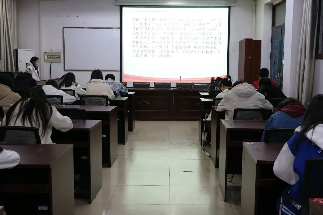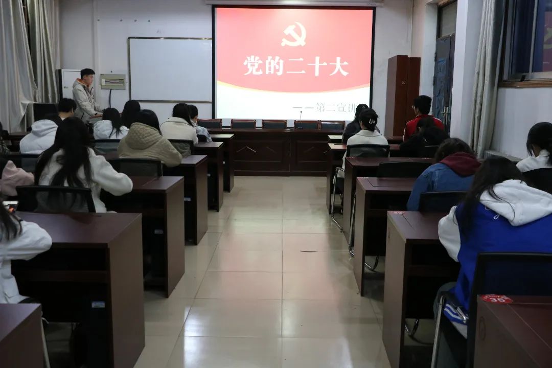 2023年4月24日晚上7点,williamhill中国在睢阳校区办公楼208会议室开展学习贯彻党的二十大精神专题宣讲活动。各宣讲团采用视频、PPT、演讲等不同形式由浅入深,以学习贯彻习近平新时代中国特色社会主义思想、党的二十大精神为主题,通过青年角度、青年语言、青年方式向同学们宣讲党的二十大精神,使得同学对于党史精神入脑入心,行成于思。