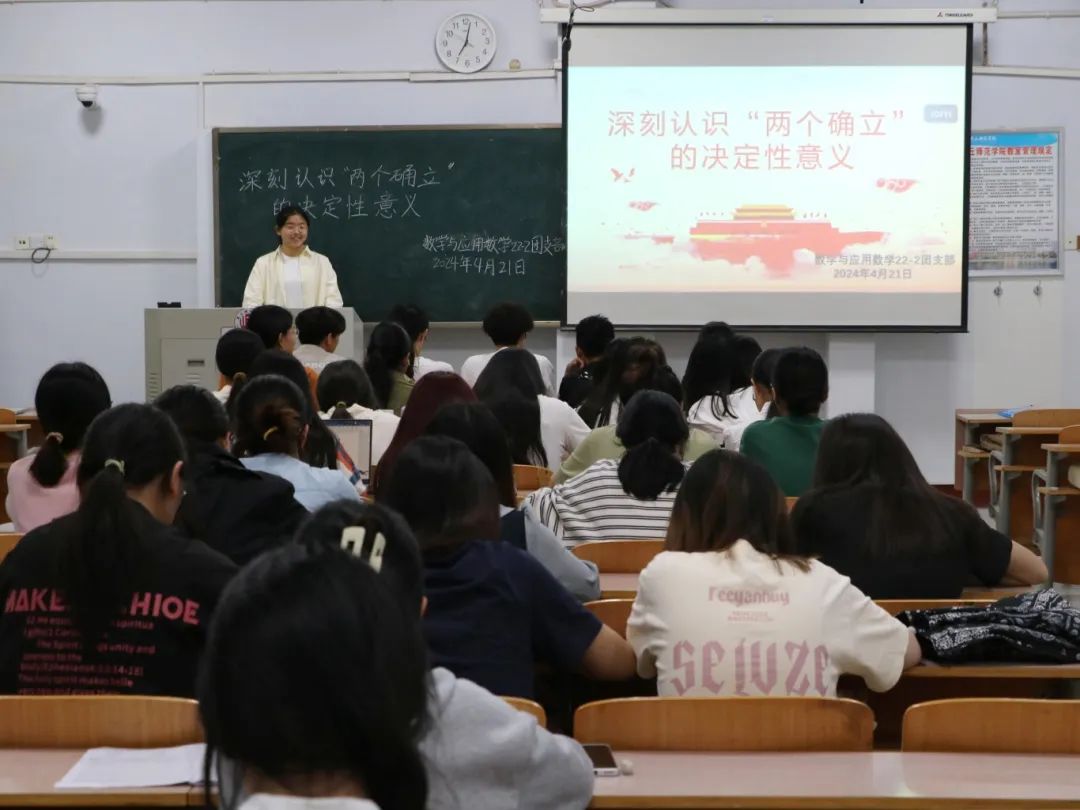 班会中,各班团支书明确了班会的主题和目标,围绕“两个确立”及习近平新时代中国特色社会主义思想展开叙述,通过对PPT的讲解和观看视频等方式向同学们介绍“两个确立”的重要意义,使同学们深刻认识到其对国家发展和民族复兴的重要性,带领同学们深入学习习近平新时代中国特色社会主义思想的核心要义。同学们结合自身实际积极讨论,分享自己关于政治理论的学习心得,对中国特色社会主义进入新时代的伟大意义有了更好的理解和把握。除此之外,各班团支书还向同学们强调学习政治理论知识的重要性,鼓励同学们将所学知识融入日常生活,为社会发展贡献自己的力量。