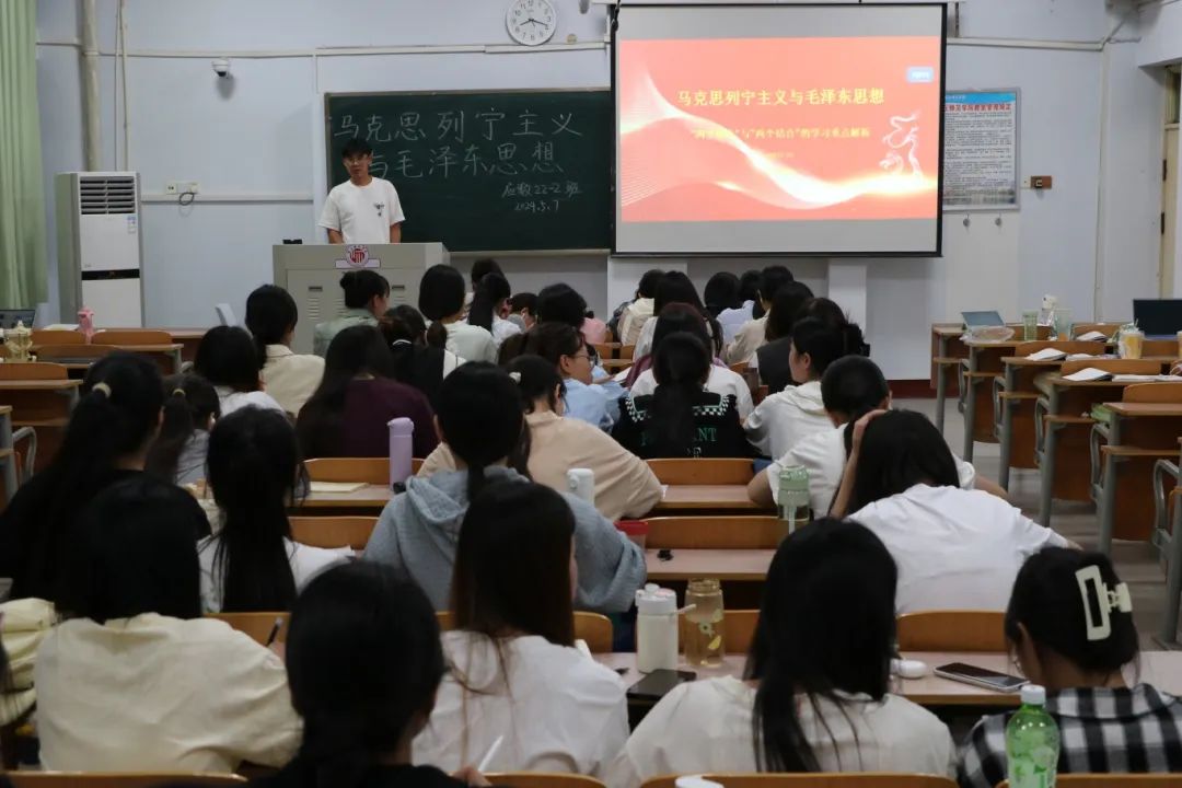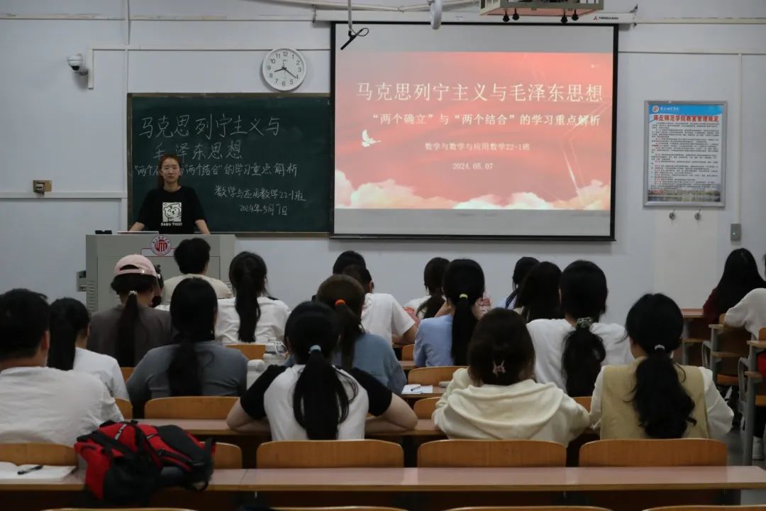 班会上,各班团支书明确了班会的主题,围绕“两个确立”与“两个结合”展开叙述,通过观看视频及讲解 PPT对“两个确立”与“两个结合”的基本内涵进行了重点解析,引导同学们深刻认识到“两个确立”对新时代党和国家事业发展、对推进中华民族伟大复兴历史进程具有决定性意义。除此之外,团支书带领同学们学习领会了习近平总书记关于做好新时代党的统一战线工作的重要思想,不断增进同学们对党的创新理论的政治认同、思想认同和情感认同。现场学习氛围浓厚,同学们专注聆听,认真记录关于政治理论的学习心得,深刻领悟了习近平新时代中国特色社会主义思想的重大意义。