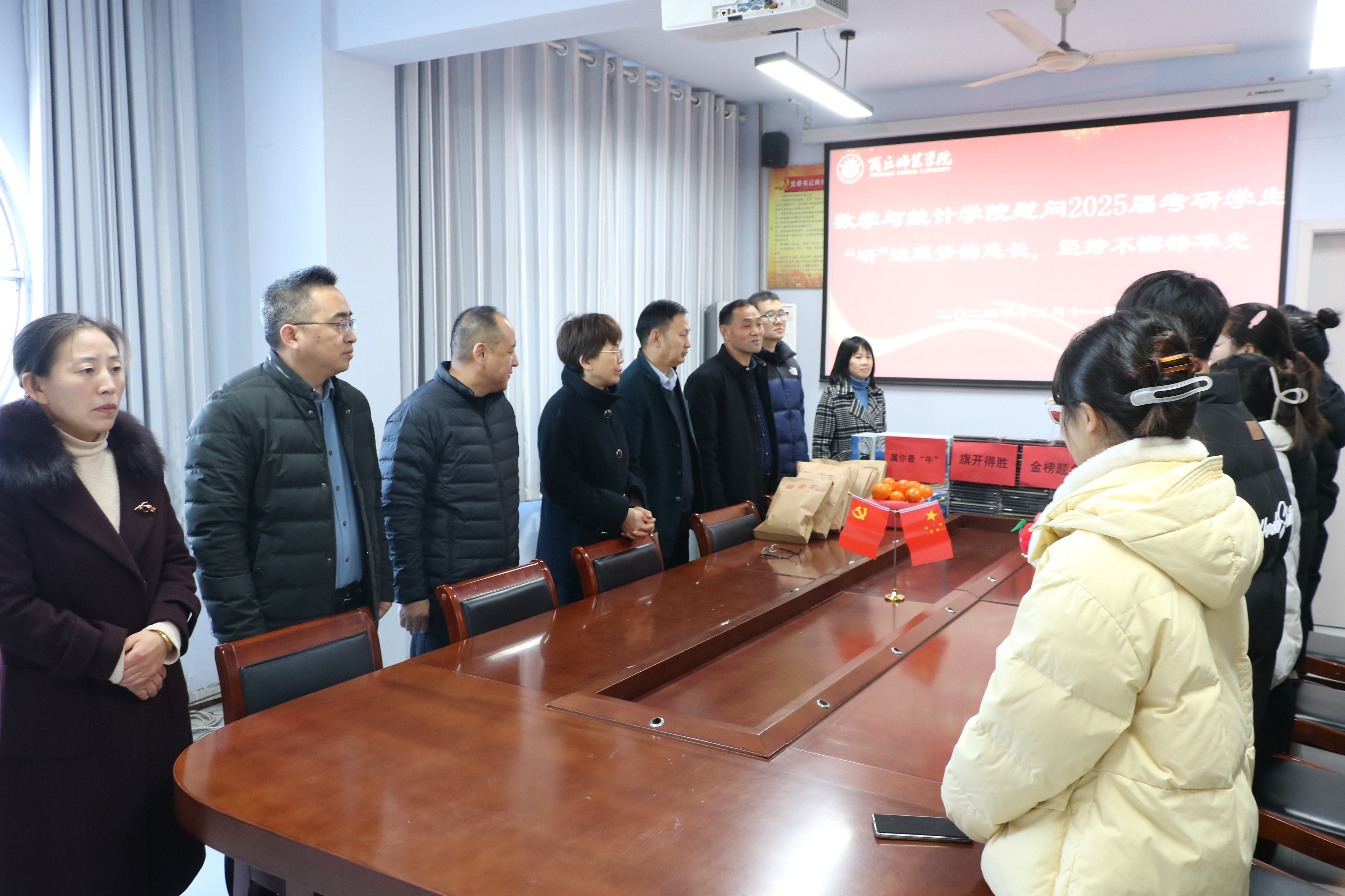 在2025年全国硕士研究生招生考试即将来临之际,为缓解考研学生备考压力,坚定考研信心,williamhill中国于12月11日上午在办公楼204会议室举行了“‘研’途逐梦,砥砺前行”慰问2025届考研学生活动。学院领导班子、全体辅导员及2025届考研学生代表参加本次活动。