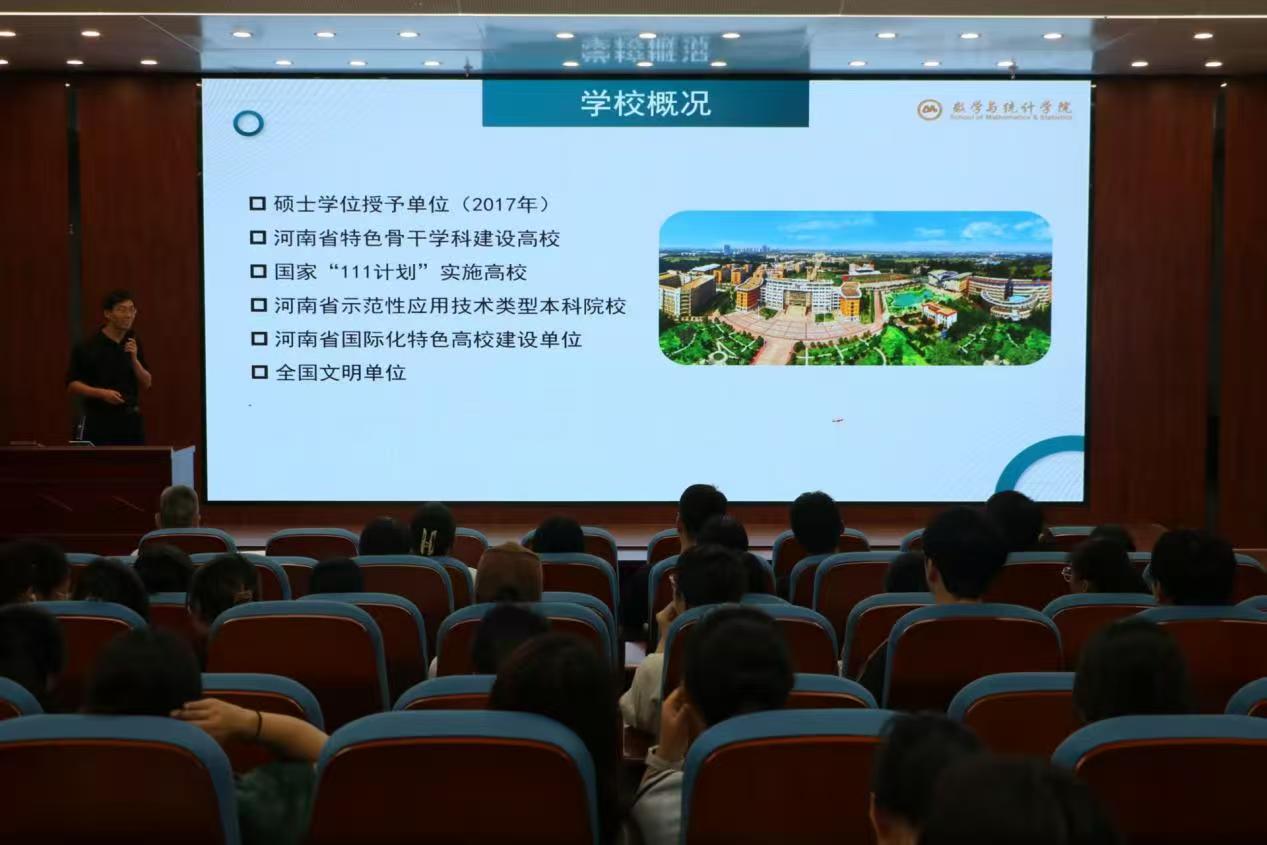 宣讲会现场,樊迎哲围绕南阳师范学院的学校概况、williamhill中国学科优势展开介绍,从科研平台、硕士点建设、学科团队、高层次成果、人才培养等方面进行了细致且全面的剖析。樊迎哲结合历年考研数据,指导学生如何依据自身优势选报南阳师范学院williamhill中国相关专业,并结合招生专业目录、招生参考书目和研究生奖助政策等方面对学科教学数学和统计学专业研究生工作进行了更加深入的介绍。互动环节,针对学子们关于招生细节、复习规划、未来就业等疑问,樊迎哲耐心答疑解惑,现场交流氛围热烈。