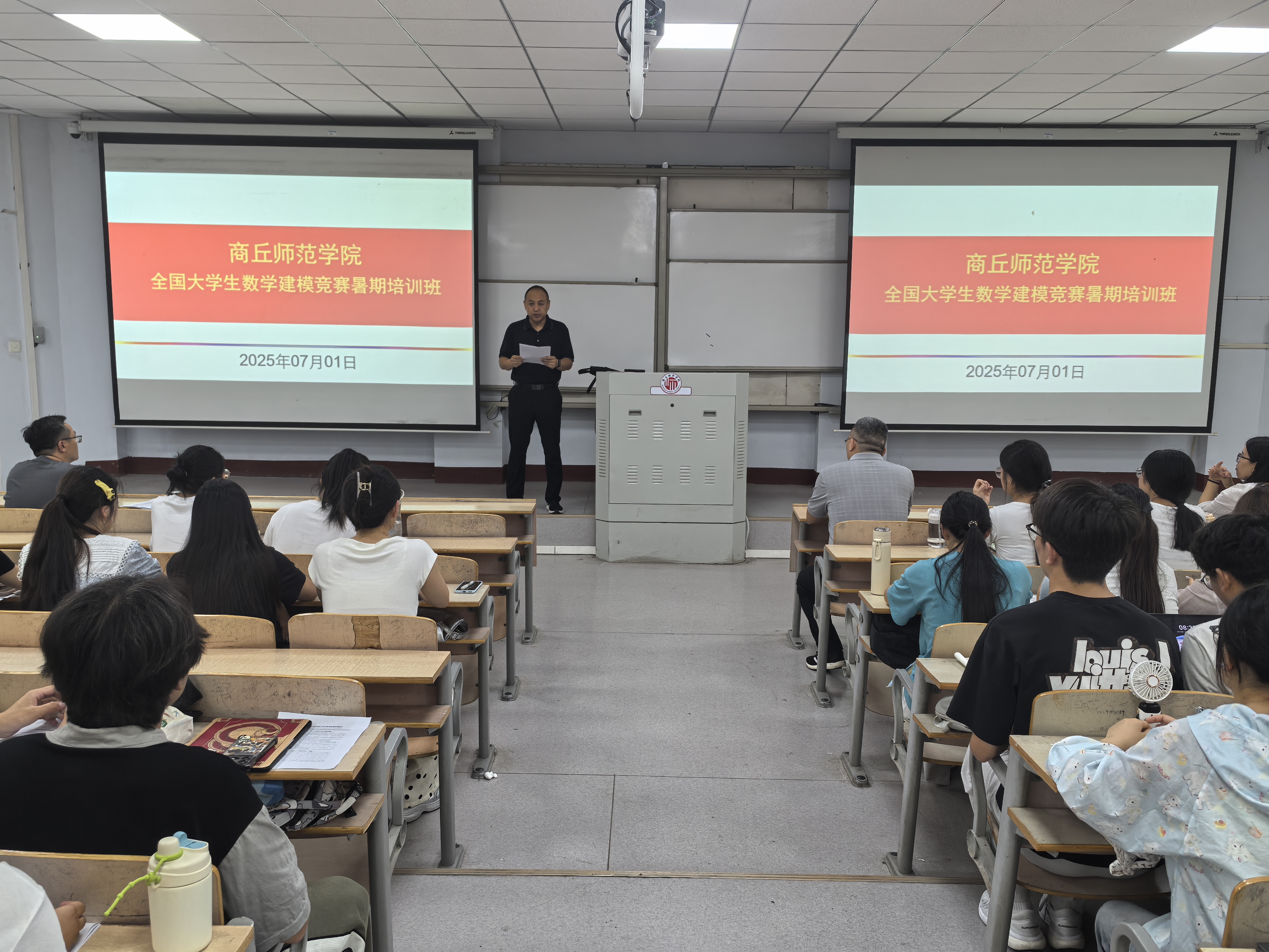 为提升学生运用数学方法与计算机技术解决实际问题的能力,全力备战2025年全国大学生数学建模竞赛,在学校的统筹领导及教务处、各学院的协同支持下,williamhill中国经前期选拔与充分筹备,组织指导教师有序开展数学建模竞赛暑期培训。7月1日上午8时,培训开班仪式在睢阳校区一号教学楼307教室举行。学院副院长刘磊、任磊,数学建模指导组全体教师及150余名参训学生共同参加了此次活动。