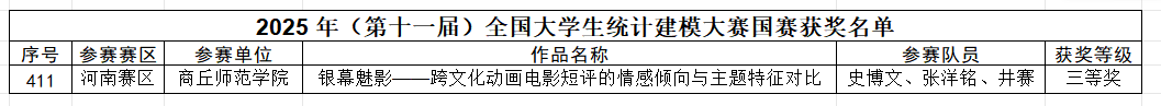 与此同时,我校在全国大学生统计建模大赛中继续保持良好势头,获得本科组国家级三等奖1项及省级三等奖8项。本届大赛以“统计创新应用,数据引领未来”为主题,吸引全国近15万名学生参与。我校参赛作品凭借前沿的研究选题、科学严谨的统计方法及扎实的内容设计,受到专家评审一致好评。