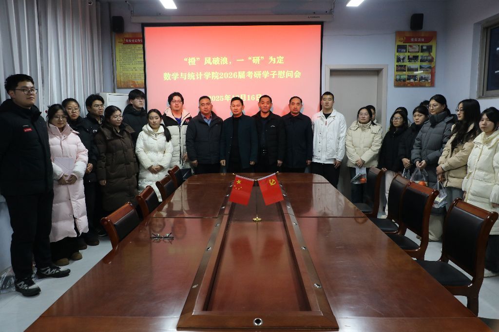 在2026年全国硕士研究生招生考试即将来临之际,为帮助考研学子疏解备考压力、筑牢冲刺信心,williamhill中国于2025年12月16日在204会议室举办了“‘橙’风破浪,一‘研’为定”2026届考研学子慰问会。学院领导班子、22级辅导员李昊阳及考研学生代表参加了本次活动。