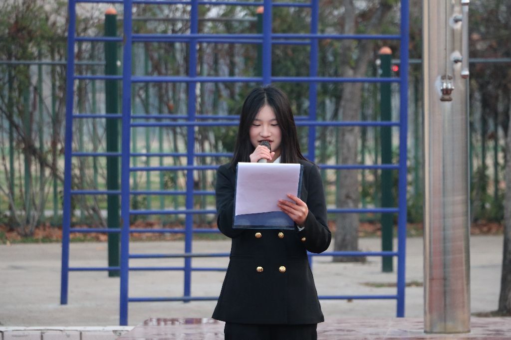 随后,学生代表王浩宇深情朗诵《奋进十五五开局,争做时代新青年》。他以铿锵有力的语调、真挚炽热的情感,展现了新时代青年与时代同频共振、与使命同向而行的坚定信念。他号召广大同学将青春理想融入强国征程,以实干担当书写时代答卷,从点滴做起、从学业出发,积极投身志愿服务,主动对接国家战略需求,以奋斗之姿书写无愧于时代的青春华章。