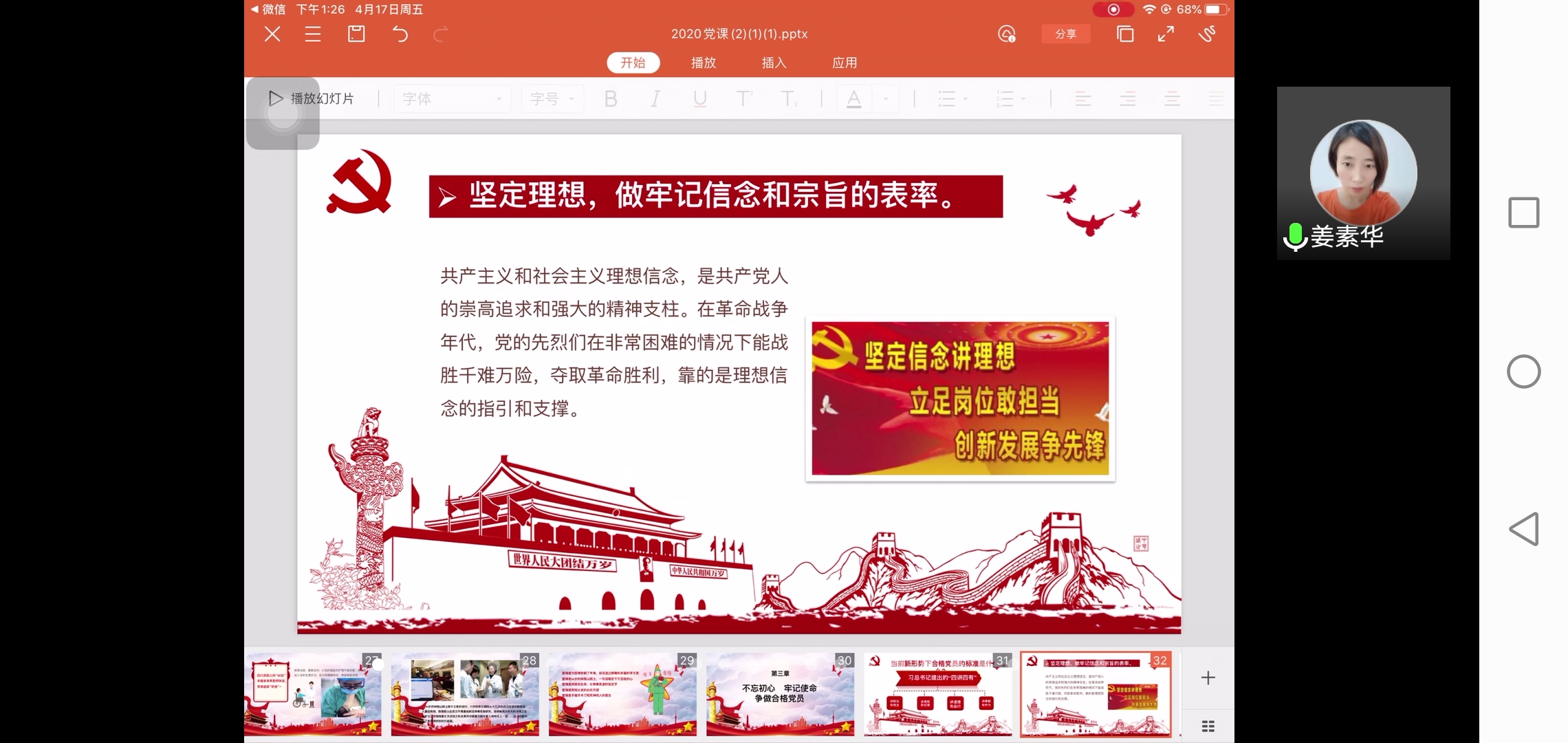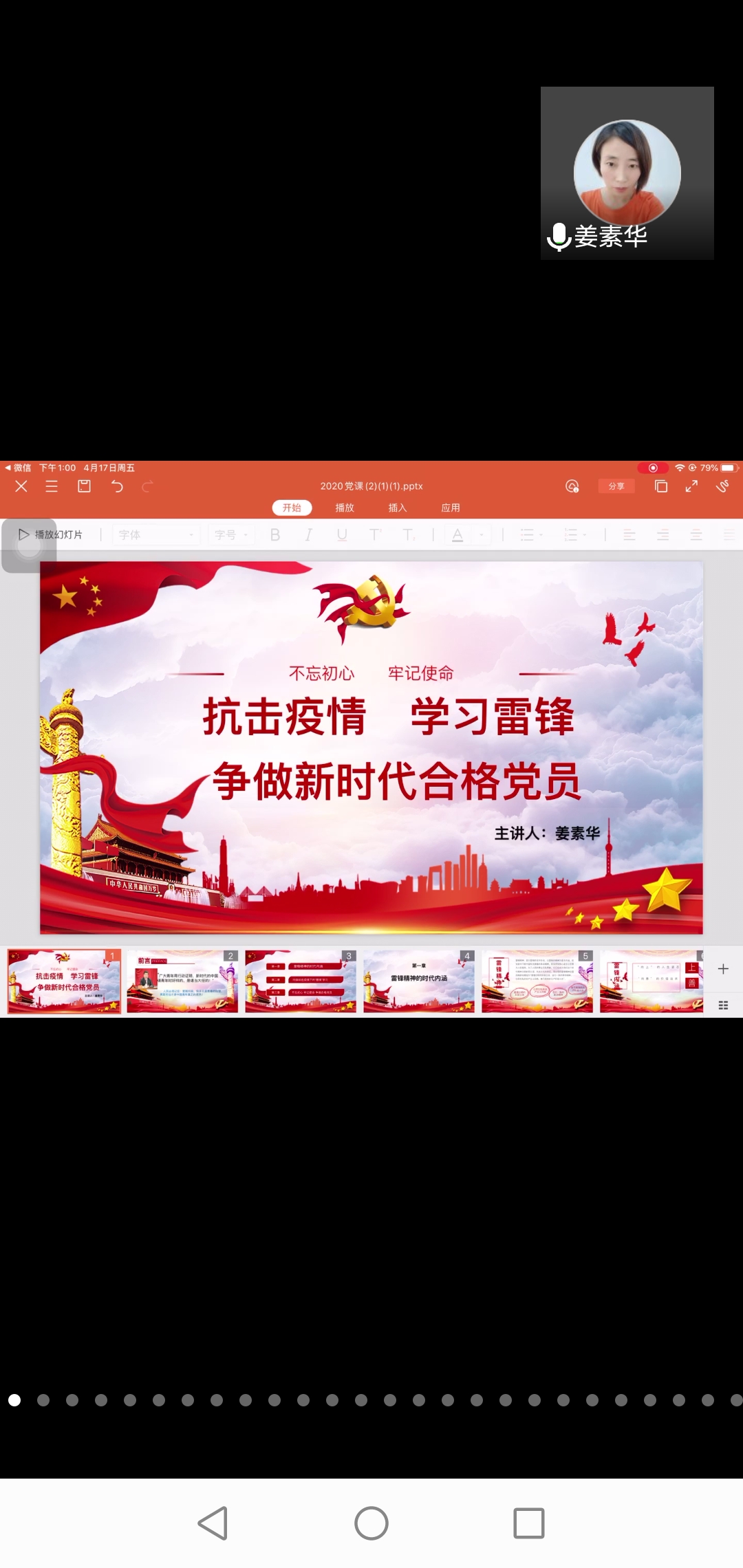 为进一步学习和弘扬雷锋精神,提高党员后备力量的素质修养。williamhill中国于4月17日下午一点召开“抗击疫情,学习雷锋,争做新时代合格党员”主题线上党课培训。此次培训由全体中级入党积极分子参加,团总支书记姜素华主讲。