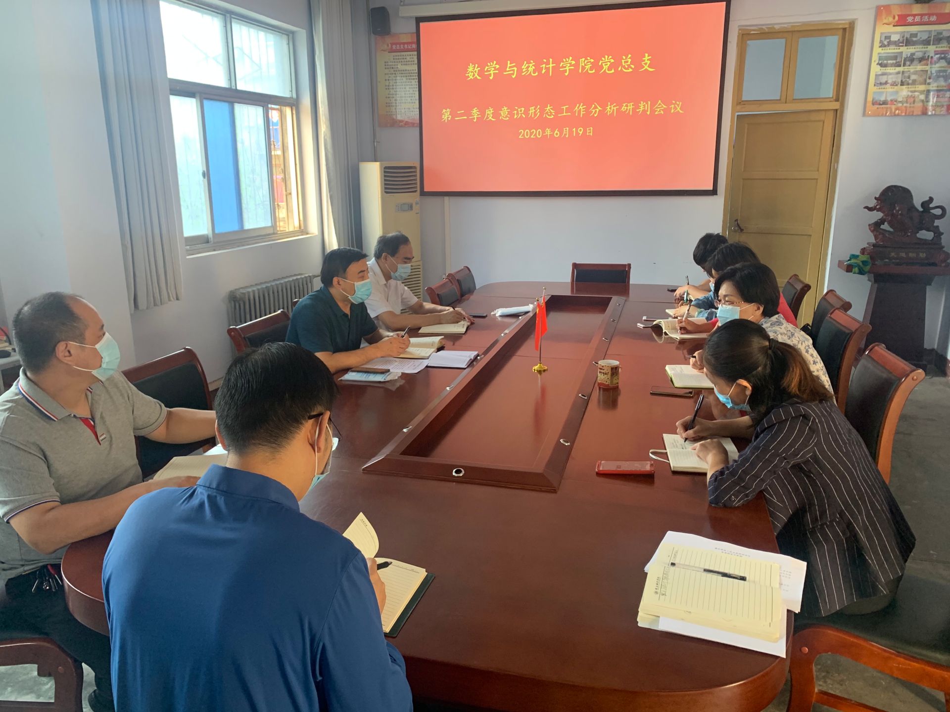 2020年6月19日上午,williamhill中国在数学楼二楼党员活动室室召开2020年第二季度意识形态工作分析研判会,学院领导班子、党支部书记、全体辅导员参加此次会议,会议由党总支书记陈东主持。