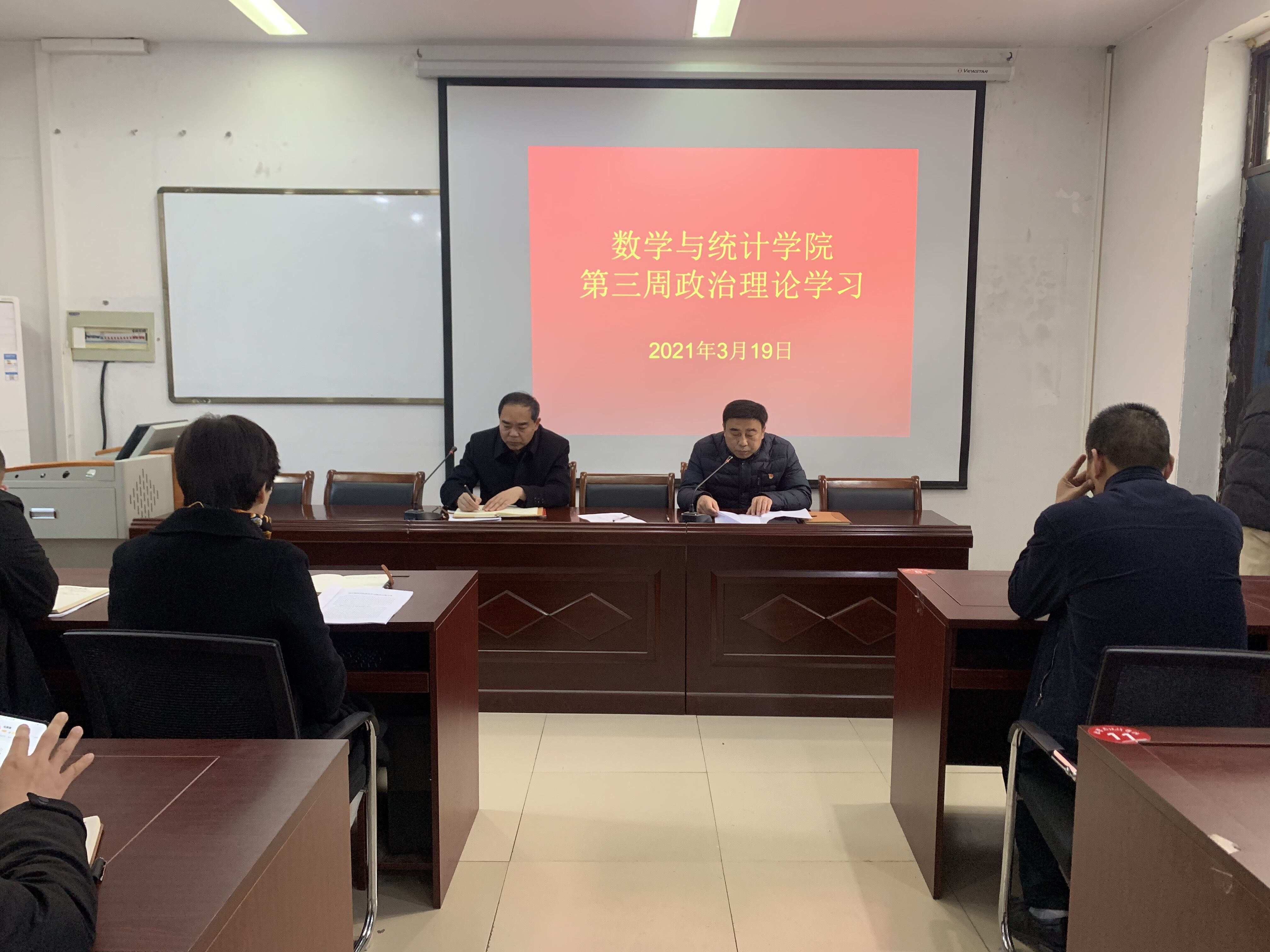 2021年3月19日,williamhill中国在数学楼综合会议室召开第三周政治理论学习会议,学院领导班子、全体教职工参加此次会议。