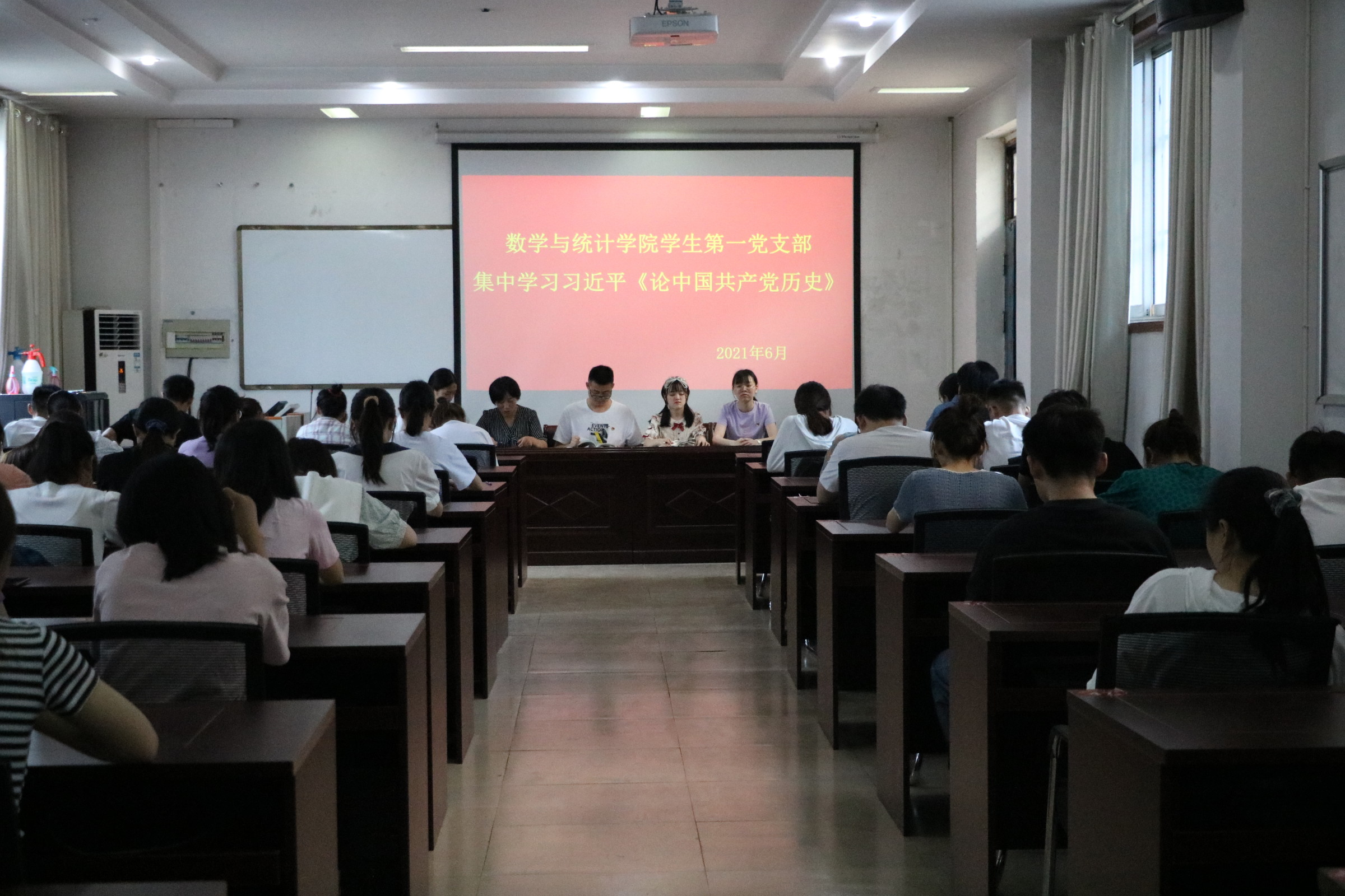 为了进一步推进党史学习教育,汲取精神力量,升华理想信念,williamhill中国于2021年6月3日中午12点30分在数学办公楼208开展了学生第一党支部集中学习习近平《论中国共产党历史》主题活动。本次活动由学生第一党支部书记姜素华主持,williamhill中国学生第一党支部全体党员参加。