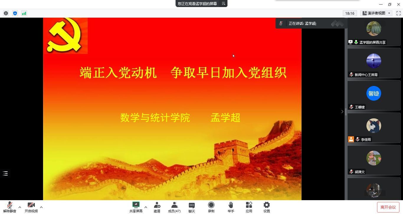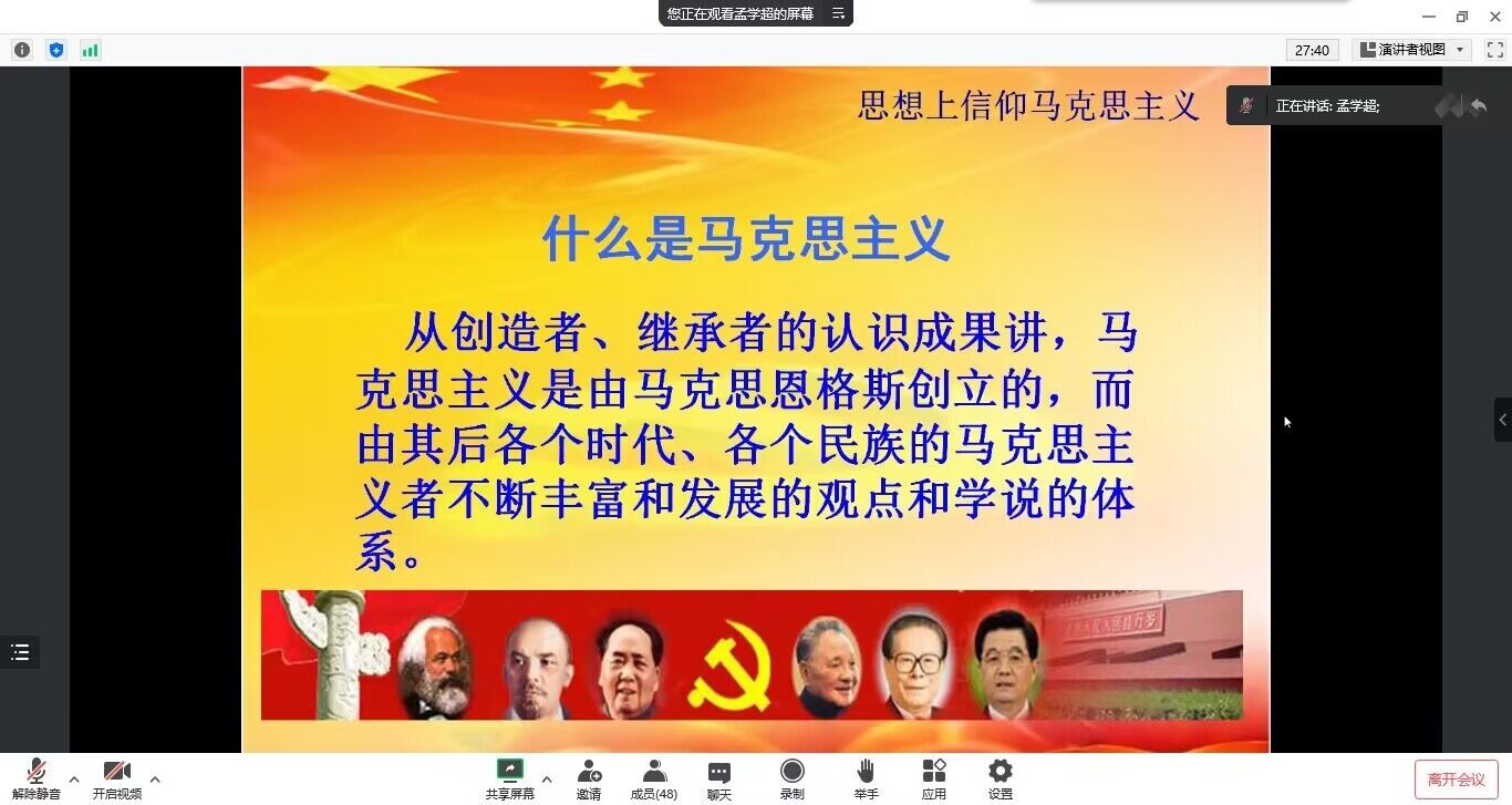 为端正入党积极分子的入党动机,坚定其理想信念,10月22日下午三点半,williamhill中国以线上会议的形式开展了中级入党积极分子党课培训。本次党课由党委书记孟学超主讲,全体中级入党积极分子参加。