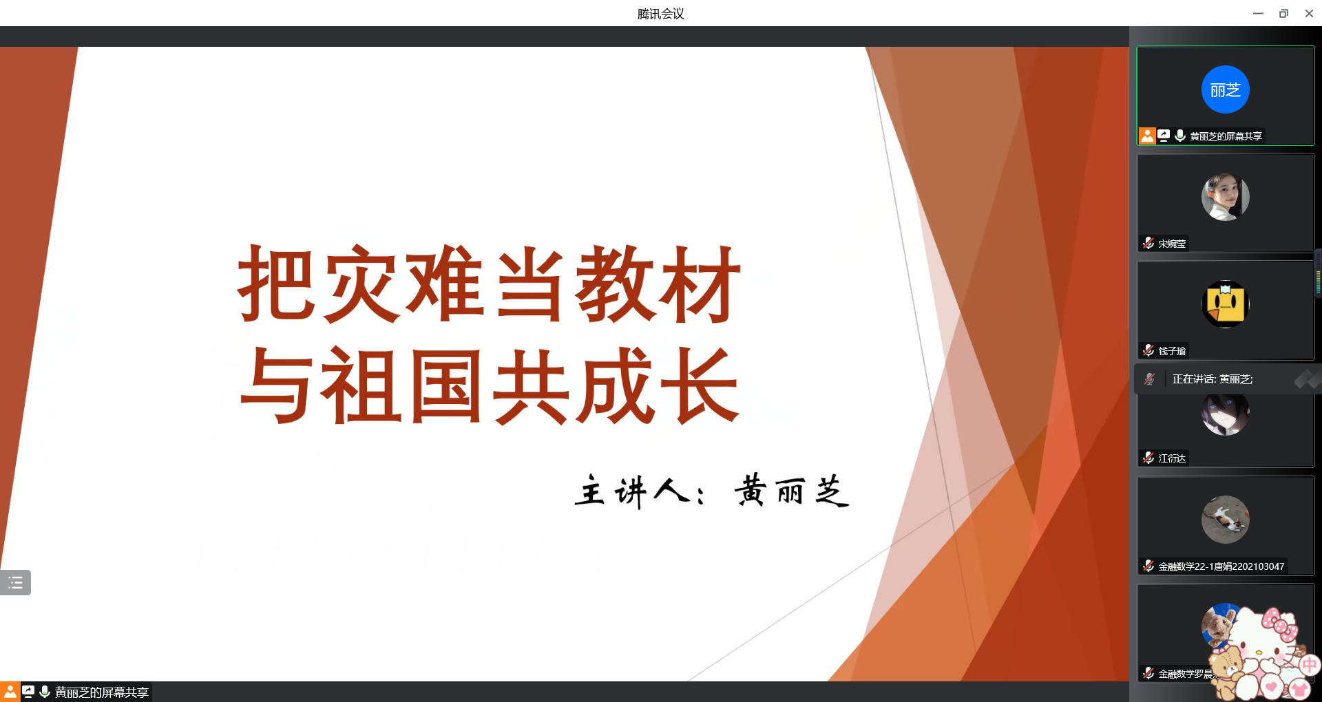 为引导中级入党积极分子树立社会主义核心价值观,明确其历史使命,做到在灾难面前与国家同患难、共成长。2022年10月24日,williamhill中国开展了“把灾难当教材,与祖国共成长”线上主题党课培训。本次党课由学生第二党支部书记黄丽芝老师主讲,全体中级入党积极分子参加。