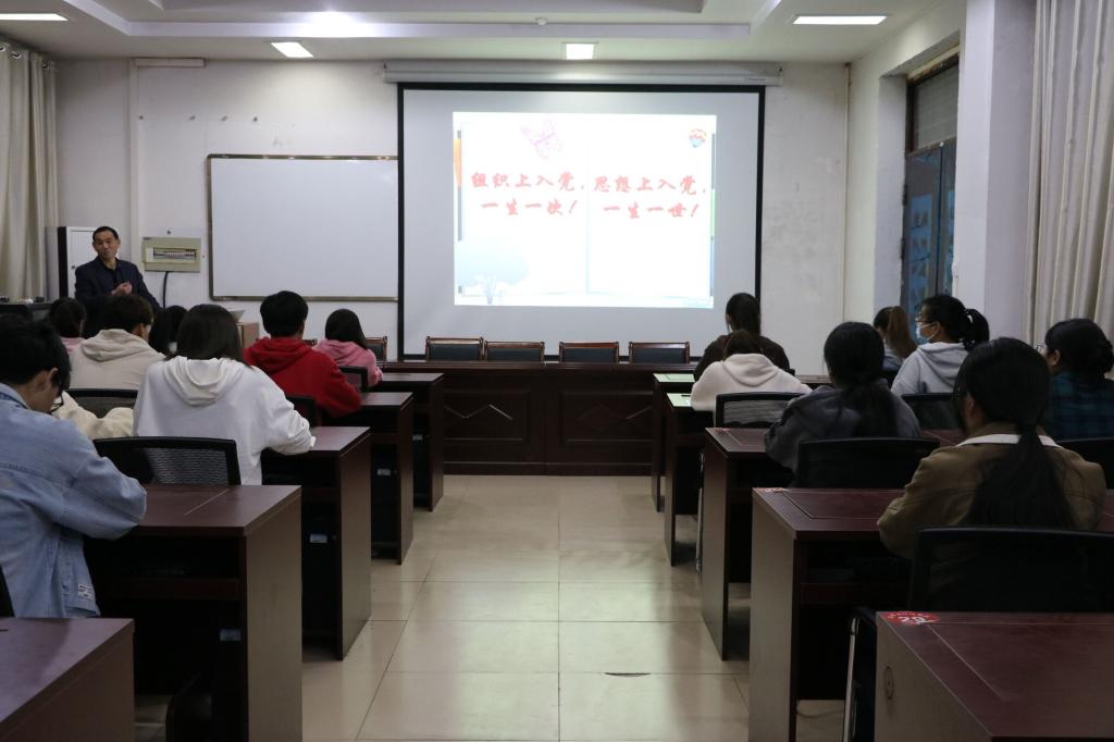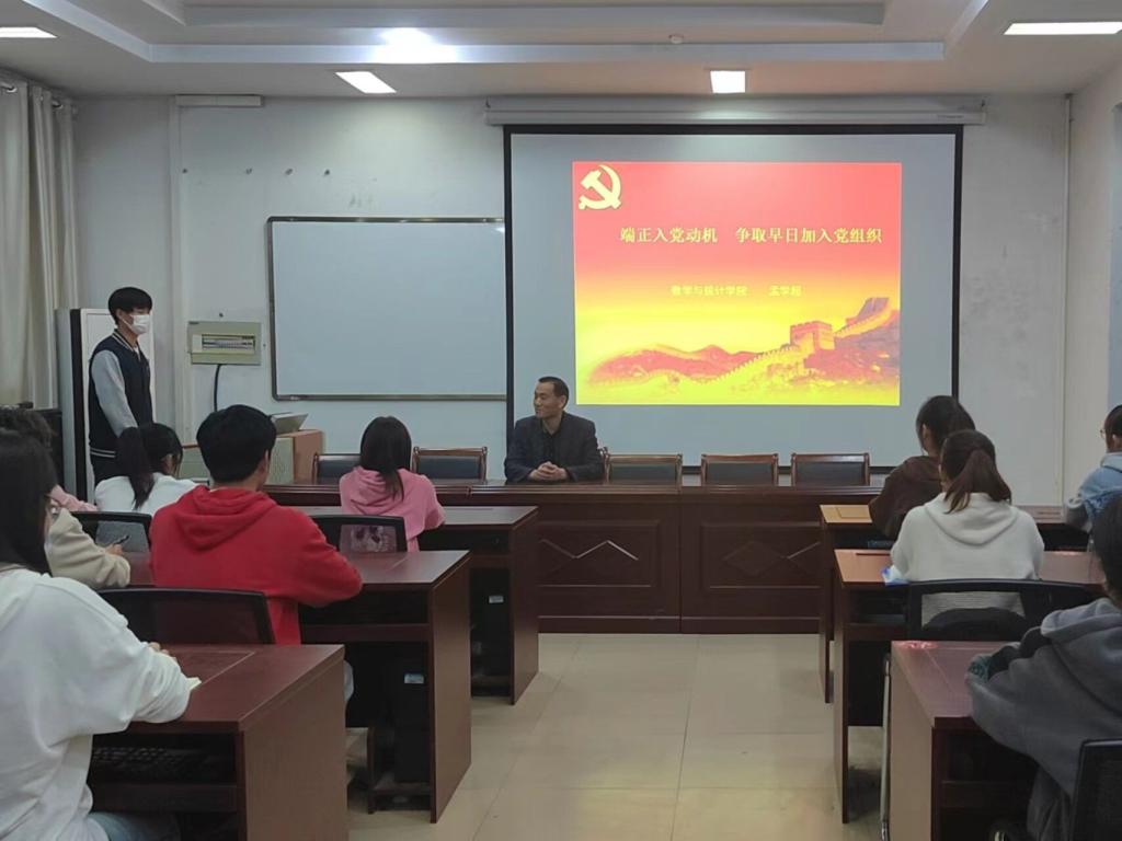孟学超书记分别从端正入党动机是申请入党的前提和条件,思想道德修养是基础,接受组织考察是原则等三方面向同学们进行讲述。首先,孟书记围绕入党动机的四种类型:虚荣型动机,从众型动机,功利型动机,理想型动机讲述了同学们应当如何确立正确的入党动机。随后,孟书记向大家讲述了马克思主义理论体系及来源,从不同方面介绍了马克思主义具有持久生命力的表现,要求大家在行动上落实党员应具备的基本素养。同时,他向同学们列举了“张亮虐猫事件”、 “李天一事件”等一系列反例强调了广大青年具备良好的思想道德修养的重要性。最后,孟书记提出当代大学生党员应努力做到:政治上的引领,学习上的楷模,工作上的表率,生活上的榜样。