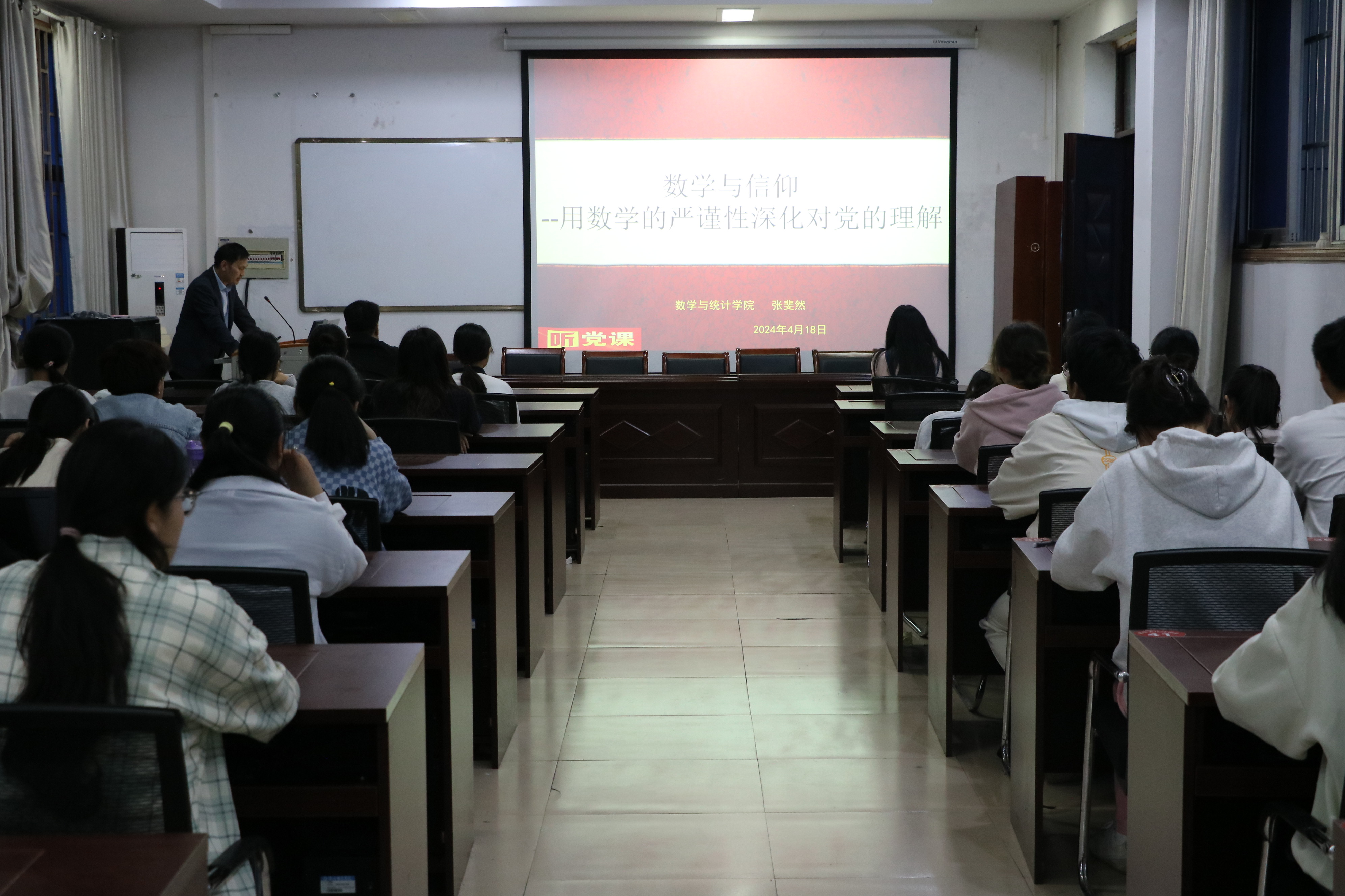 为加强对入党积极分子的思想政治教育,提高其对党的认识和理解,进一步坚定理想信念,williamhill中国于4月18日在办公楼208教室开展了以“数学与信仰——用数学的严谨性深化对党的理解”为主题的党课培训。本次党课由williamhill中国院长张斐然主讲,全体中级入党积极分子参加。