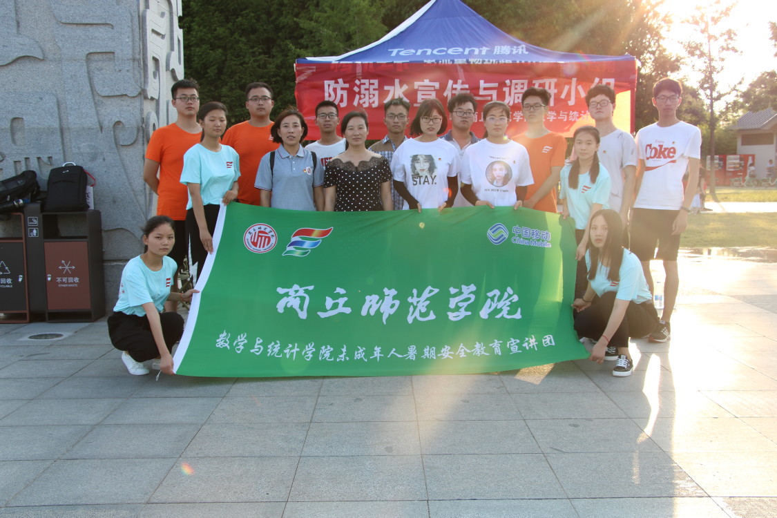 近年来,学生溺水事件频发,成为社会上的一大安全隐患。为避免此类情况的发生,williamhill中国暑期三下乡“防溺水宣传与调研”小组的15名志愿者来到商丘市好人公园的日月湖畔进行防溺水安全知识宣传。