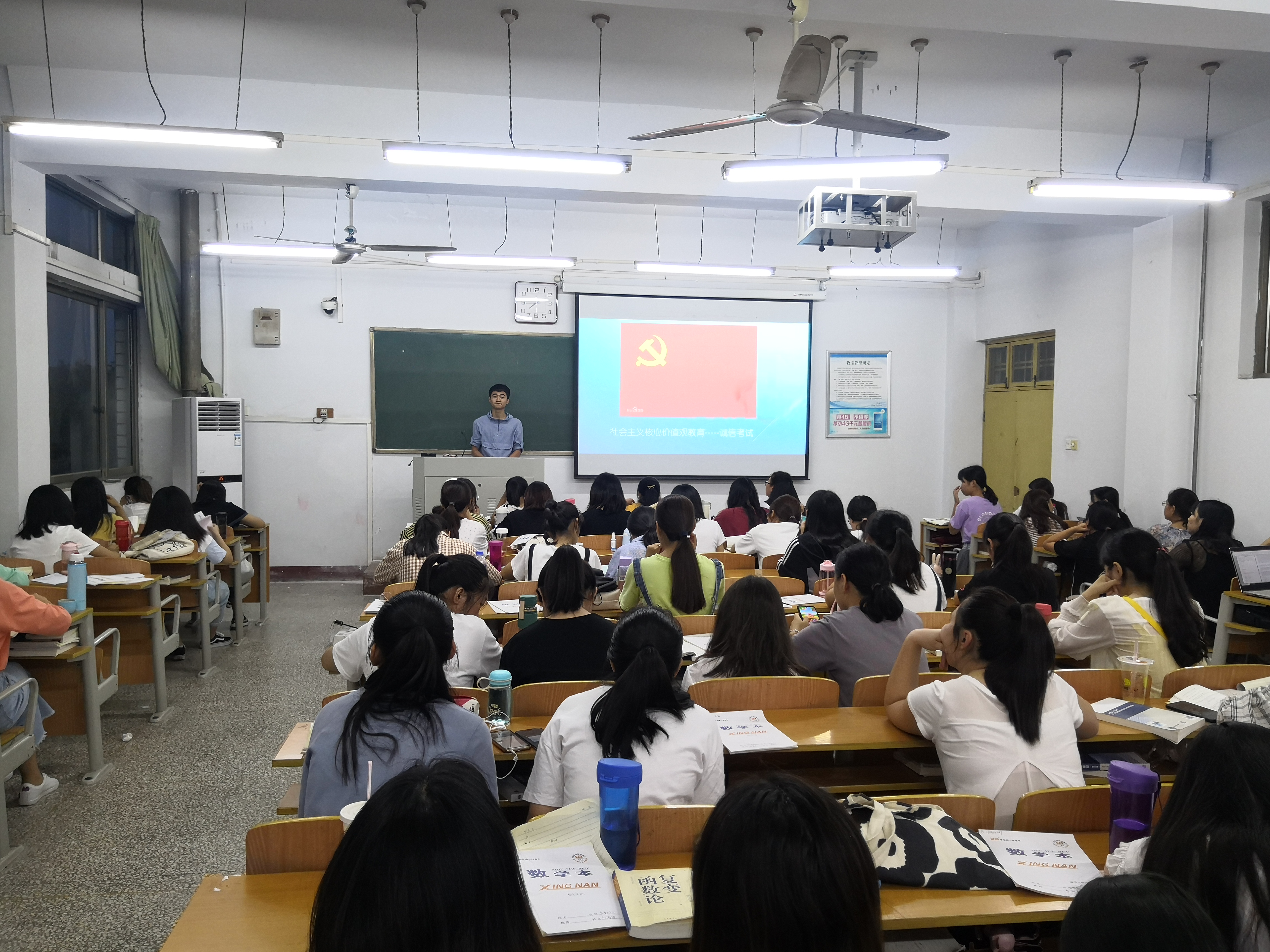 首先,全体学生认真学习并深刻领会社会主义核心价值观要义,把建设富强、民主、文明、和谐国家;创造自由、平等、公正、法治社会环境;做爱国、敬业、诚信、友善的新时代公民等融入到平时学习和生活中。其次,认真学习中国共产党第十九次全国代表大会精神并牢记大会主题:“不忘初心,牢记使命,高举中国特色社会主义伟大旗帜,决胜全面建成小康社会,夺取新时代中国特色社会主义伟大胜利,为实现中华民族伟大复兴的中国梦不懈奋斗”。最后由班长带领同学共同学习《商丘市文明行为促进条例》。