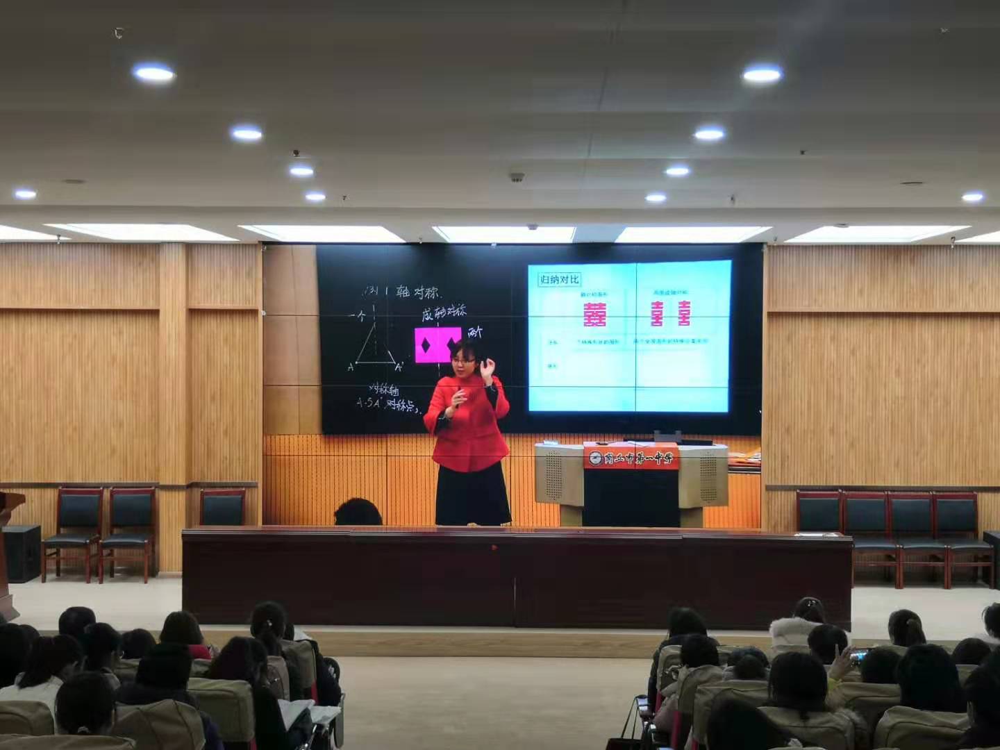 活动历时两天,由商丘市名师工作室的14位名师就“合并同类项”、“三角形的高、中线、角平分线”、“轴对称”、“最短路径问题”、“一元一次方程”等五个课题开展教学活动的展示。各位老师风格不同,各具特色,教学设计上各有千秋,课堂演绎独具匠心,精彩纷呈。有的老师沉稳干练,幽默洒脱。有的老师声音动听,语言优美,温柔可亲,极聚亲和力,感染力。有的老师课件制作优美,设计环环相扣。每个老师都表现出扎实的教学功底、饱满的教学热情,流畅的教学组织。不同的老师有不同的教学风格,相同课题就有了截然不同的展示,进而让学生学习到不同教学思想的交流与互动,参与活动的65同学纷纷表示开阔了思路、提升了理念、丰富了知识。