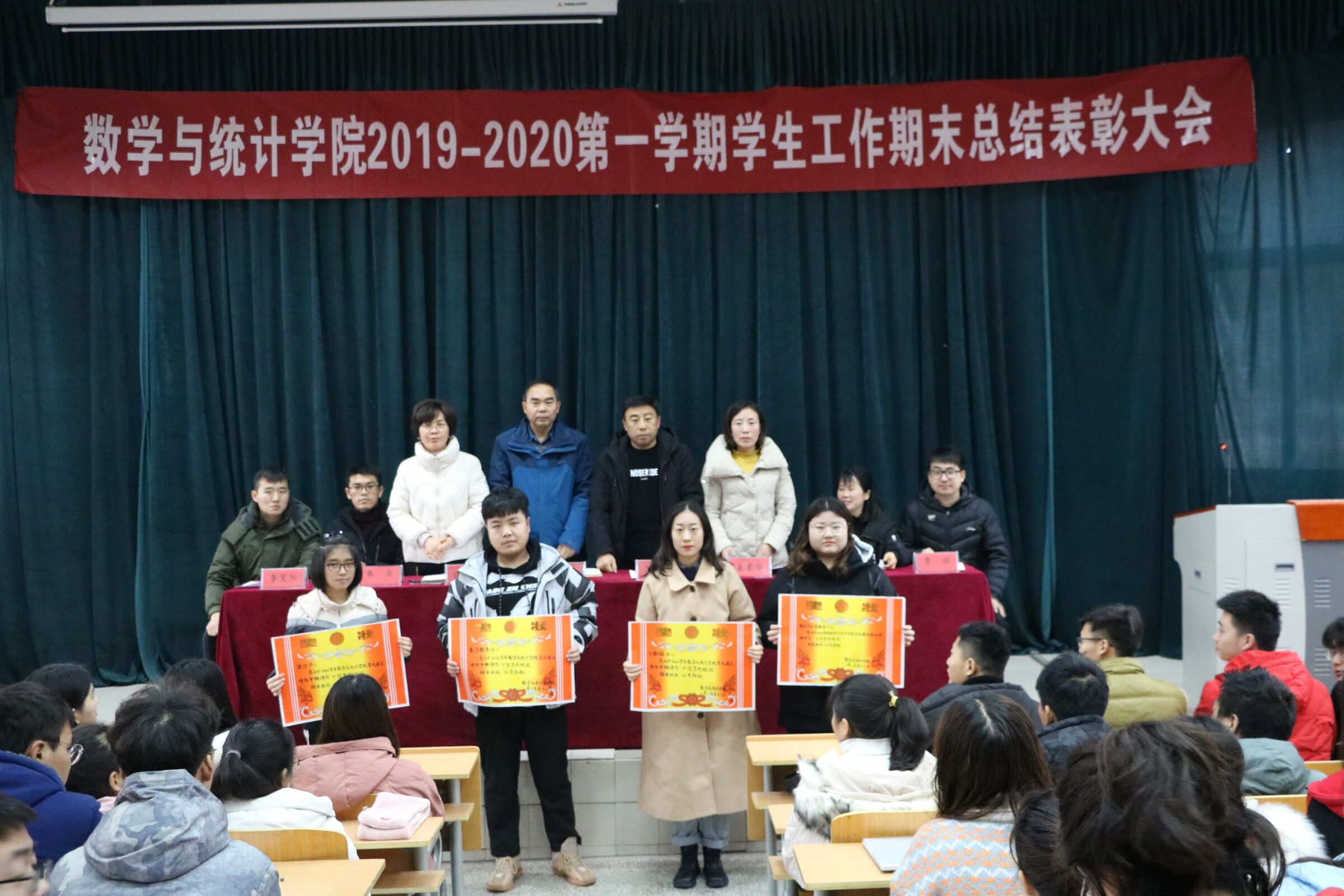 12月25日中午十二点半,williamhill中国“2019-2020第一学期学生工作期末总结表彰大会”在物理报告厅隆重举行。本次大会由williamhill中国党总支书记陈东、院长梁洪亮、党总支副书记陈树艳及各年级辅导员出席,学生会全体成员、各年级班委及宿舍代表参加。会议由团总支书记姜素华主持。