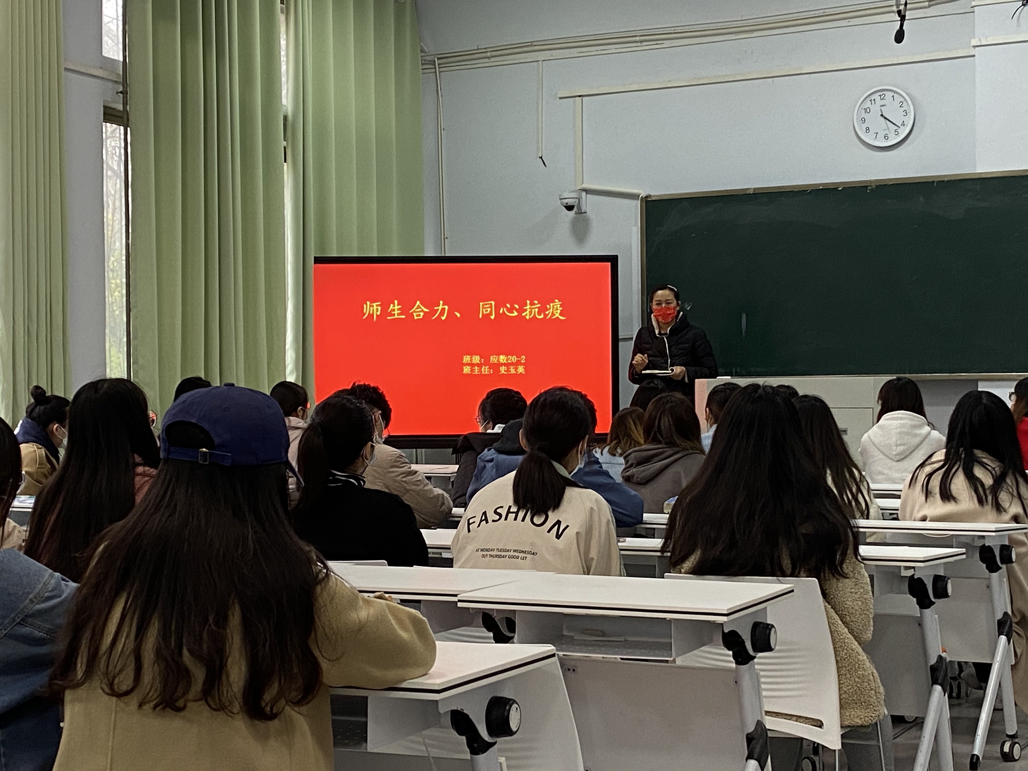 会后,21名班主任结合当前疫情防控形势、疫情防护的相关知识以及学校关于疫情防控的相关举措,通过线上线下相结合的方式为学院全体学生召开了“师生合力、同心抗疫”主题班会,在班会中,重强调了疫情防控工作的重要性,要求同学们自觉遵守学校疫情防控常态化期间的各项规章制度,做到非必要不离校、时刻做好自身疫情防护、做好校园疫情防控闭环管理,同时呼吁同学们做到规范佩戴口罩、保持安全社交距离、加强体育锻炼、调整好心态以及勤洗手、勤消毒等相关防范措施。