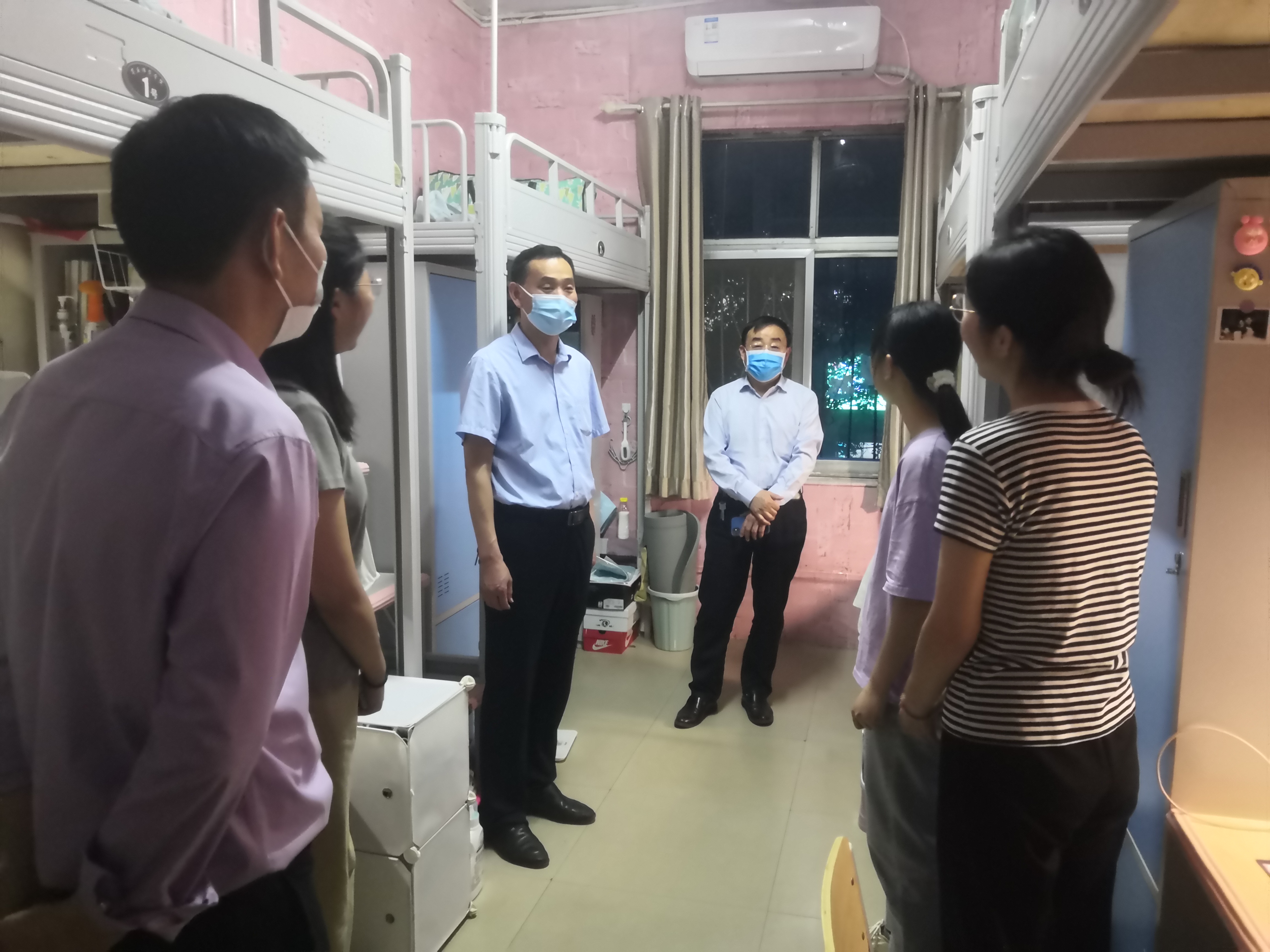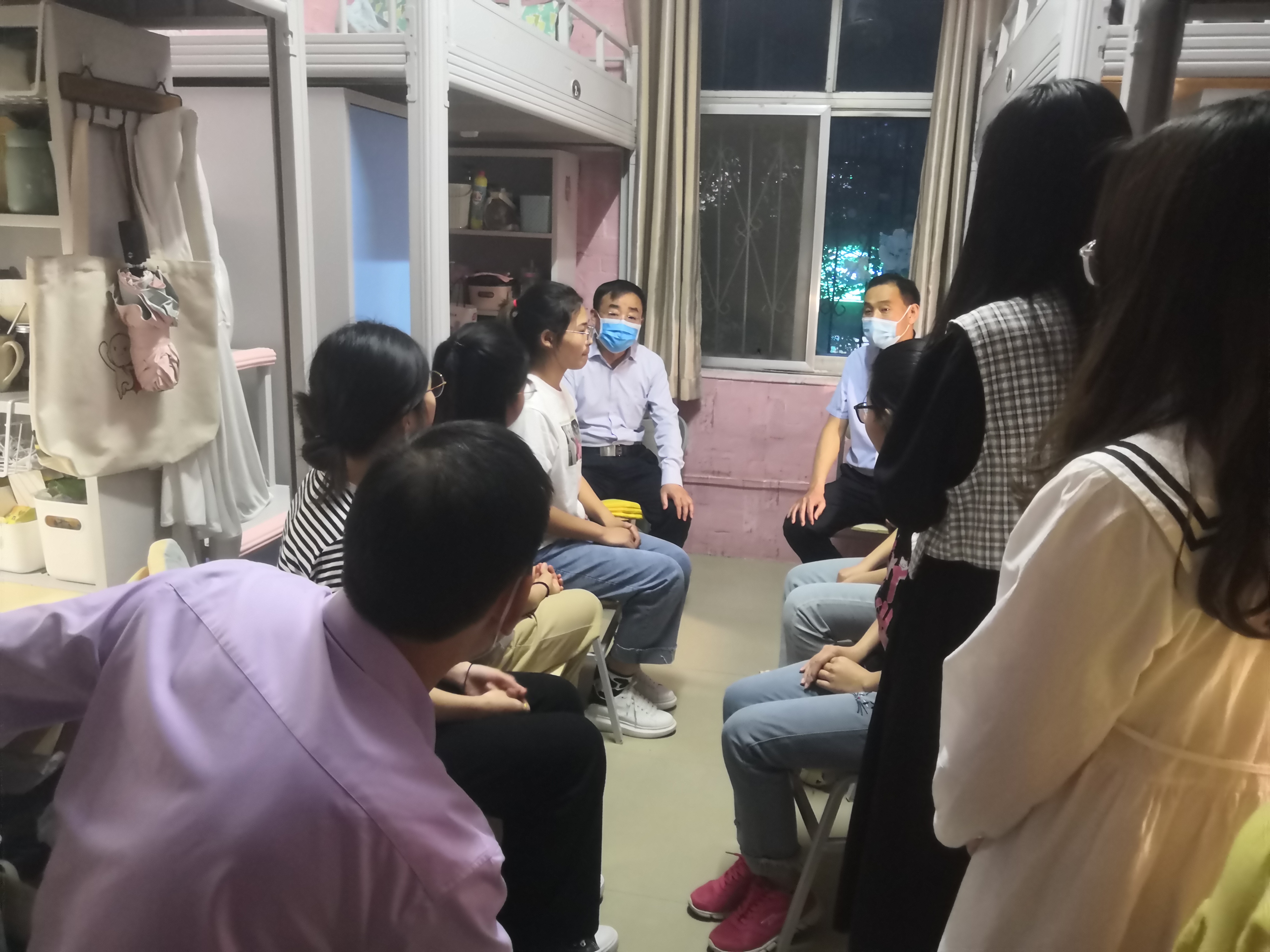 在走访中,徐茂田到2号楼211校领导联系宿舍与同学们进行亲切交谈,深入了解同学们的学习、生活情况以及思想状态。着重了解同学们在期末考试复习、考研准备、饮食安全和封闭管理等方面的问题,认真倾听同学们的意见建议,并亲切解答学生的提问。同时向准备考研的同学提出了相关的建议,徐茂田指出,考研要提早着手,这样才能准备得更加充分,并要及时与学院领导老师交流联系,前期目标要定位在较高水平的院校,有压力才有动力,后期要根据自己的实际情况及时调整目标院校,重视院校的选择。他还强调要求严格遵守学校疫情防控规定,时刻紧绷疫情防控这根弦,不放松,不松懈;加强体育锻炼,增强自身体质,练就强健体魄。他结合自身经历鼓励同学们把精力放在学业上,踏实认真学习,夯实专业基础,树立远大志向,规划长远目标,不负青春好时光,继续深造,努力成长为堪当民族复兴重任的时代新人。