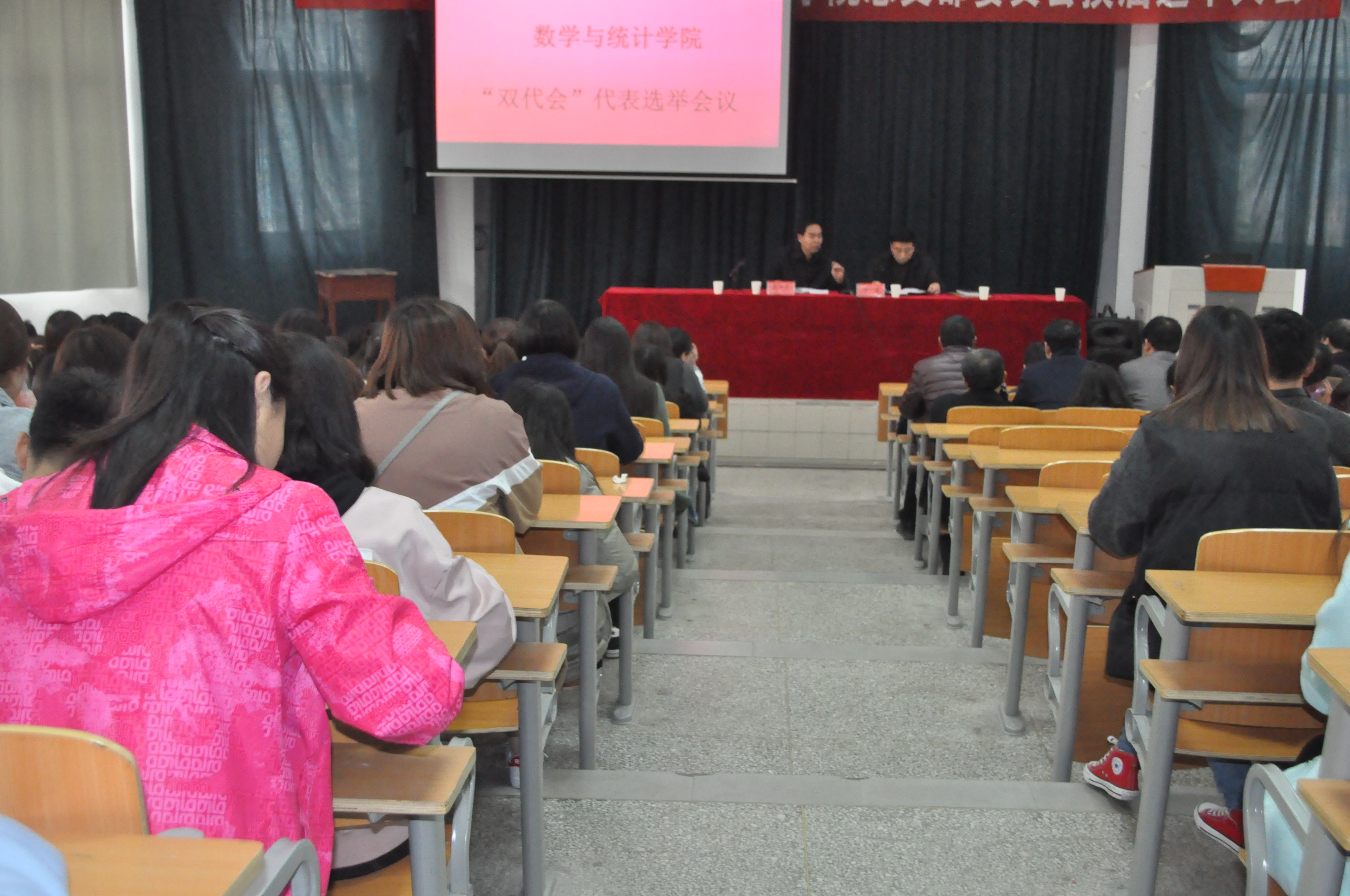 会议进行第一项,由陈东书记宣读学校关于“双代会”代表选举的相关文件,要求大家按照学校关于第三届教职工暨工会会员代表大会代表选举的办法和分配名额进行选举。
