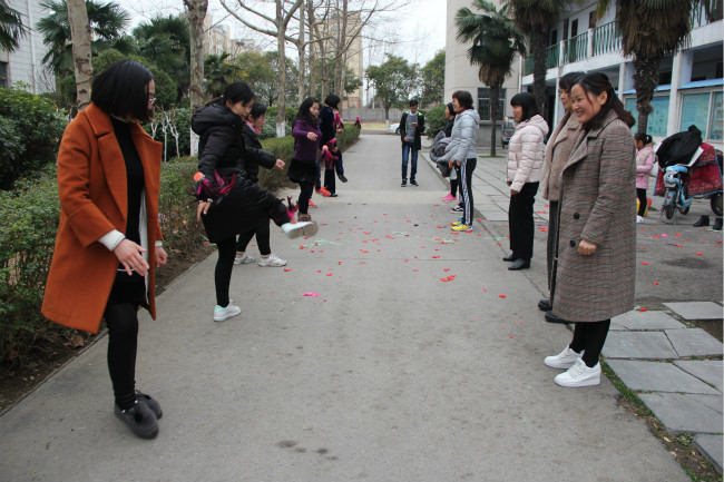 为了庆祝“三八妇女节”,3月7日上午,分会主席陈树艳和女工委员赵巧玲带领院女工举行“踢毽子”和“踩气球”比赛,踩气球比赛将参赛者分成人数相等的两队,分散在规定的区域内,发令后,双方队员在保护好自己的气球不被对方踩破的前提下,千方百计地踩破对方队员的气球,以一方全部队员的气球被踩破为负,另一方为胜,只见个个踩得又快又多,勇争第一。