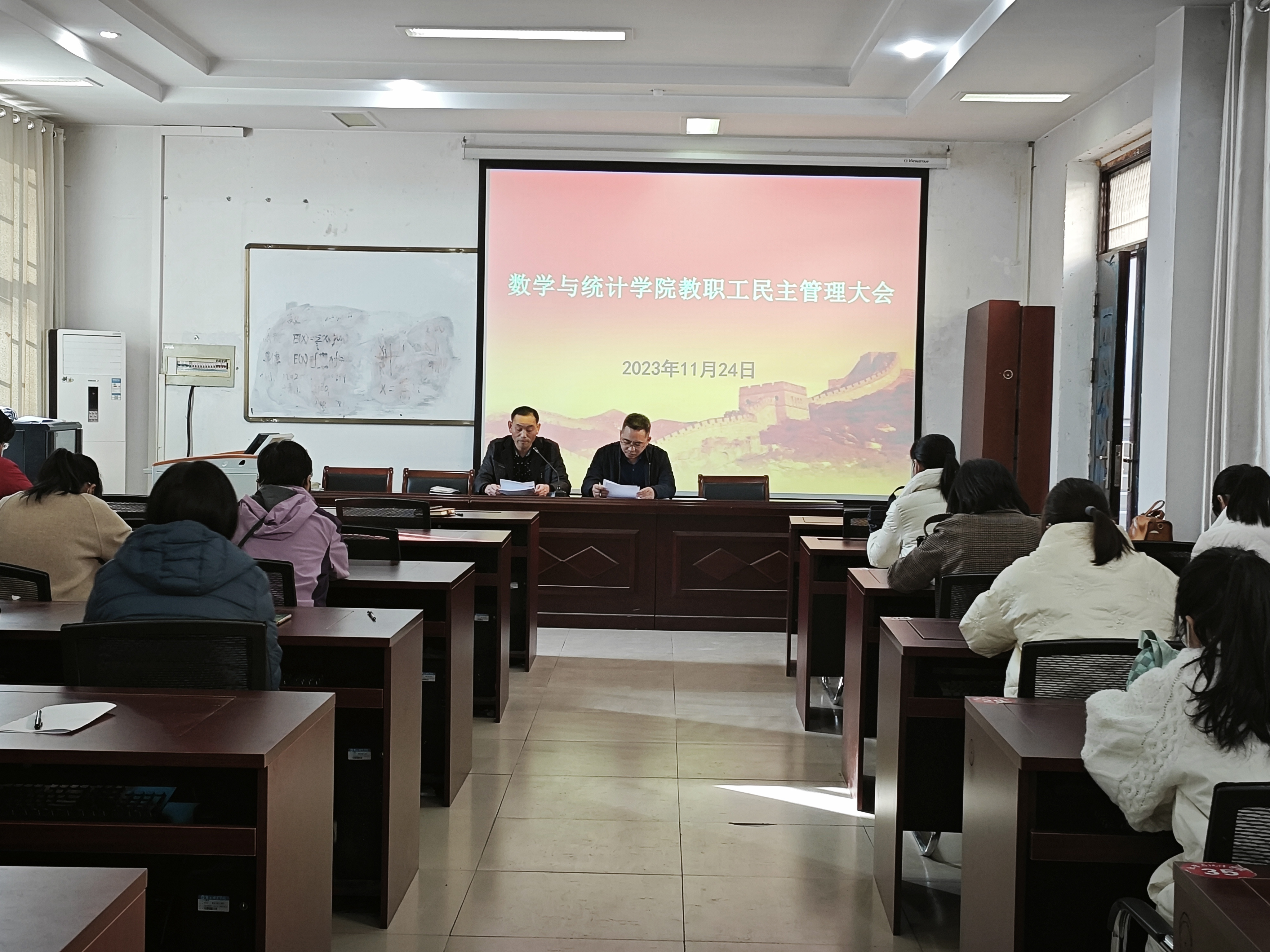 为进一步加强民主政治建设,不断调动教职工参与民主决策、民主管理和民主监督的积极性,11月24日下午,williamhill中国在数学楼208会议室召开了教职工民主管理大会。学院全体教职工参加了会议,会议由学院党委书记兼工会主席孟学超主持。