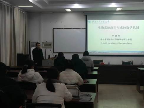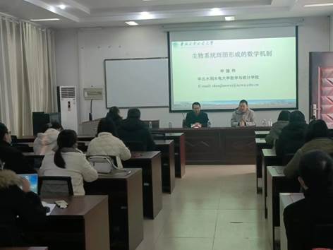 2月7日上午,华北水利水电大学博士生导师申建伟教授应williamhill中国的邀请,为我院教师做了题为《生物系统斑图形成的数学机制》的学术报告。报告由由williamhill中国院长张斐然教授主持,学院全体博士和部分教师参加了此次报告会。