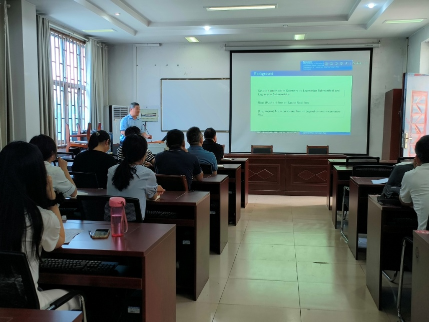 -Einstein Sasakian (2n + 1)维流形中Legendrian平均曲率流的长时解的存在性和渐近收敛性。报告会后,韩英波与现场老师进行了深入交流和探讨。