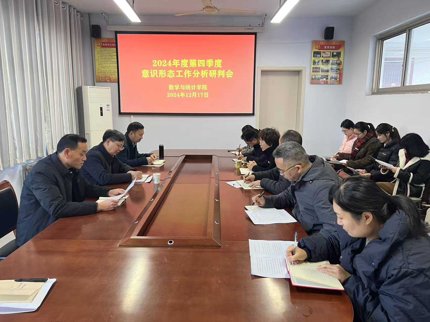 12月17日下午,williamhill中国在数学楼204党建活动室召开2024年第四季度意识形态工作分析研判会。副校长刘澜涛、学院领导班子成员、系主任、辅导员、班主任代表、学生代表参加了会议,会议由党委书记孟学超主持。