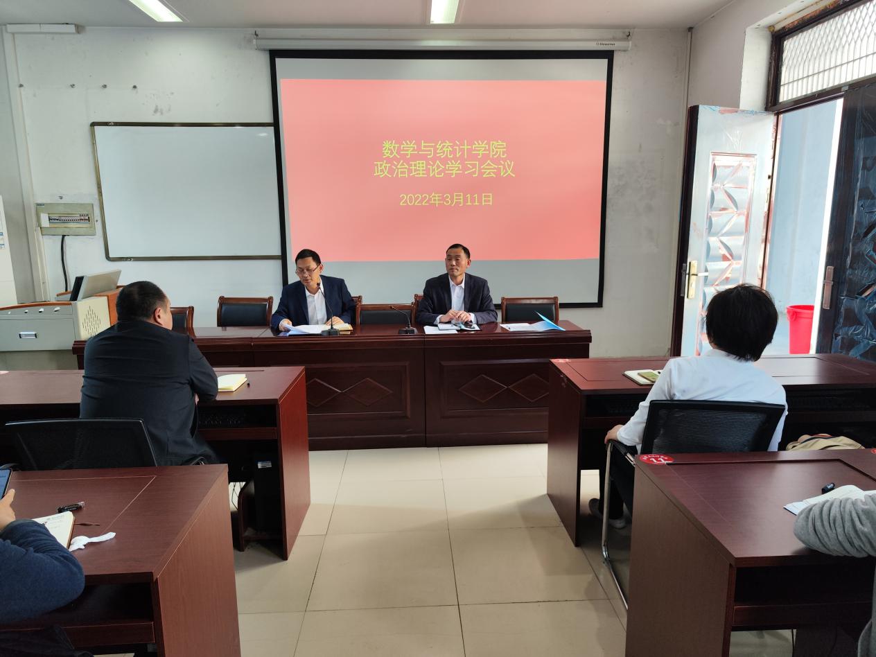 2022年3月11日,根据学校宣传部通知要求,williamhill中国在数学楼综合会议室召开政治理论学习会议,学院领导班子、全体教职工参加此次会议,会议由院长张斐然主持。